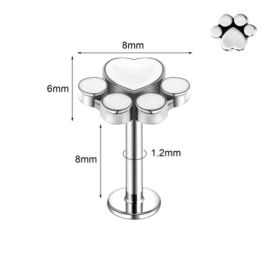 16g Cat's Paw Labret Ring Flat Back Stud Earring Conch Helix Lip Piercing