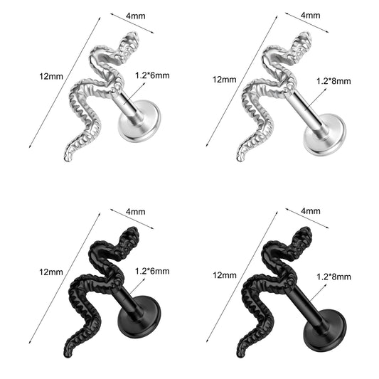 16g Snake Labret Ring Flat Back Stud Earring Conch Helix Lip Piercing