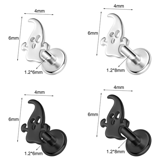 16g Ghost Labret Ring Flat Back Stud Earring Conch Helix Lip Piercing