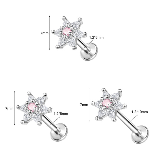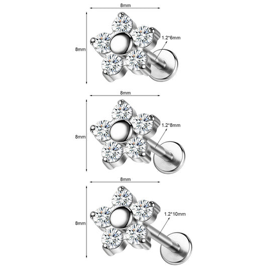 16g Flower Labret Ring Flat Back Stud Earring Push-in Conch Helix Lip Piercing