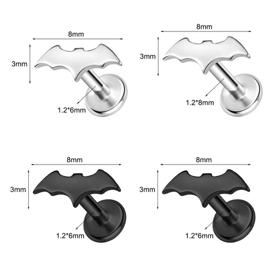 16g Bat Labret Ring Flat Back Stud Earring Conch Helix Lip Piercing