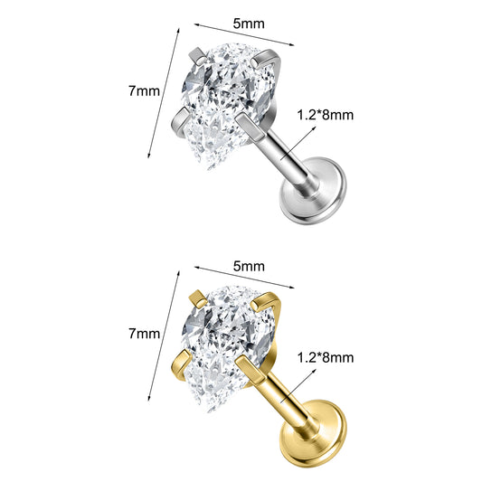 16g Heart Zircon Labret Ring Flat Back Stud Earring Conch Helix Lip Piercing