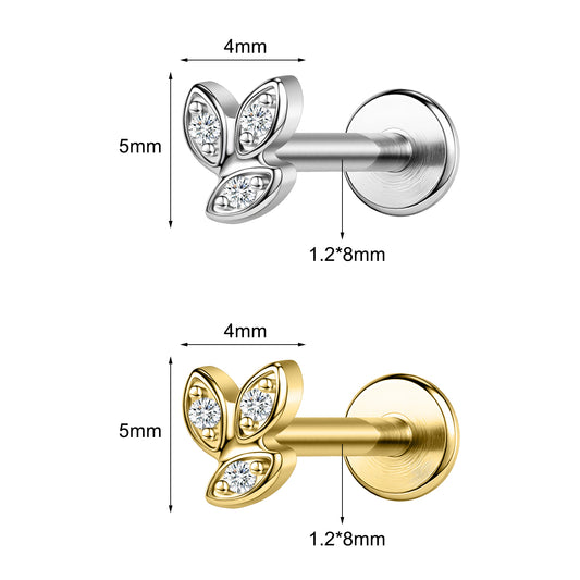 16g G23 Titanium Labret Ring Bat Stud Earring Threaded Conch Helix Lip Piercing