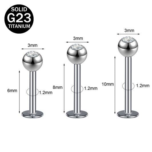 16G G23 Titanium Labret Rings Simple White Zircon Tragus Helix Conch Piercing