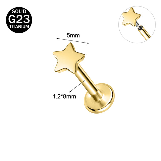 16g G23 Titanium Labret Ring Star Stud Earring Threaded Conch Helix Lip Piercing