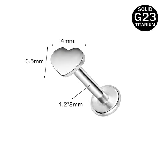 16g G23 Titanium Labret Ring Heart Stud Earring Threaded Conch Helix Lip Piercing