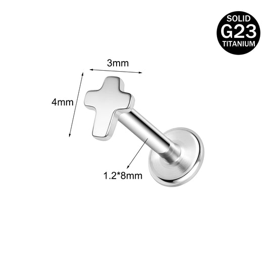 16g G23 Titanium Labret Ring Cross Stud Earring Threaded Conch Helix Lip Piercing