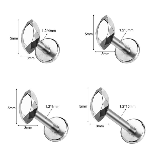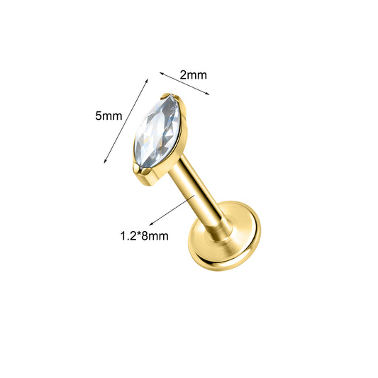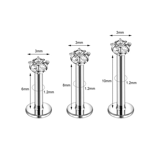 16g G23 Titanium Labret Ring Clear Zircon Stud Earring Threaded Conch Helix Lip Piercing