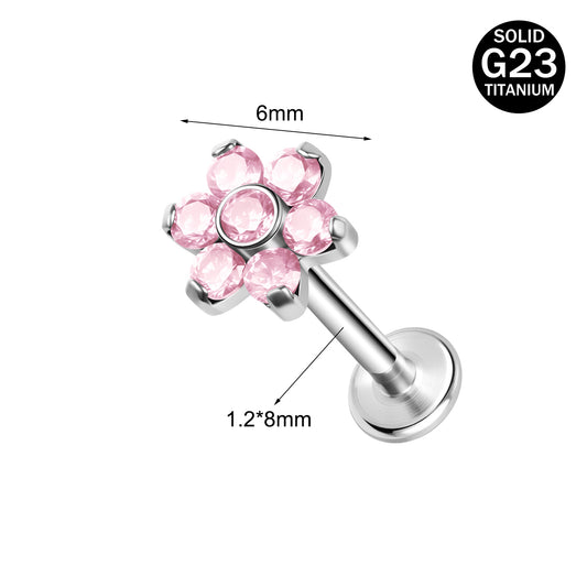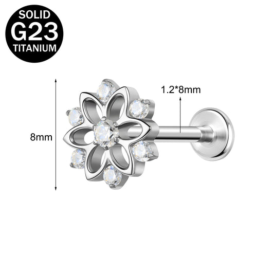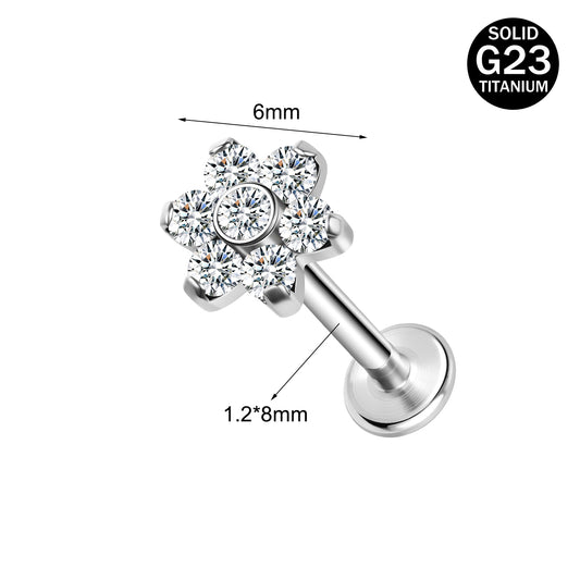 16g G23 Titanium Labret Ring Snowflake Stud Earring Threaded Conch Helix Lip Piercing
