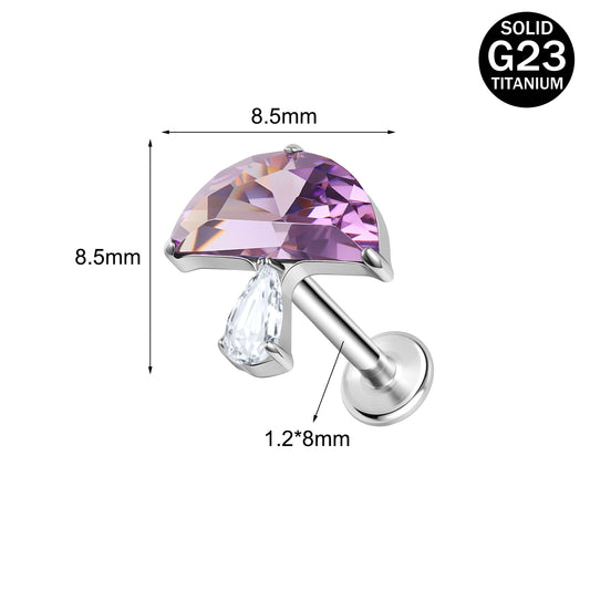 16g G23 Titanium Labret Ring Mushroom Stud Earring Threaded Conch Helix Lip Piercing