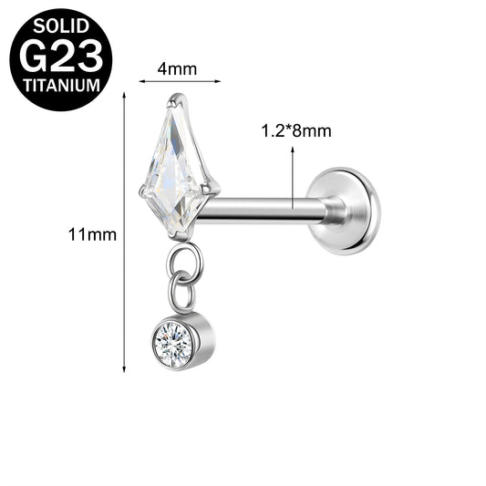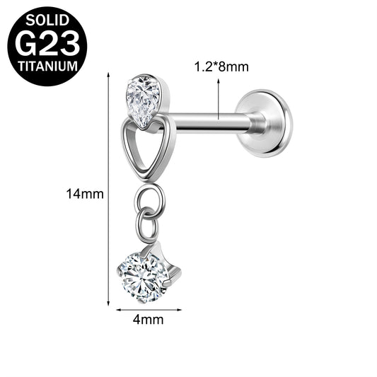 16g G23 Titanium Labret Ring Zircon Dangle Stud Earring Threaded Conch Helix Lip Piercing