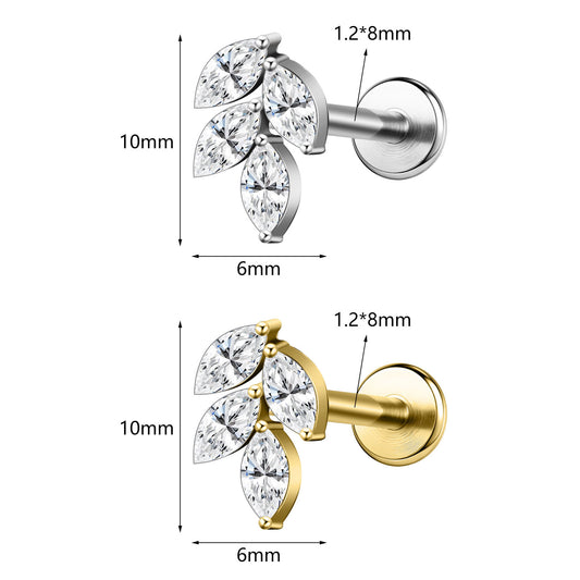 16g G23 Titanium Labret Ring White Zircon Stud Earring Threaded Conch Helix Lip Piercing