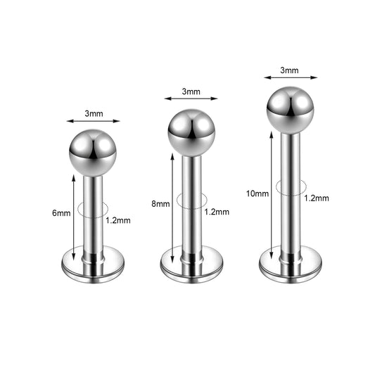 16G Push in Stainless Steel Ball Labret Rings Conch Tragus Helix Monroe Lip Piercing