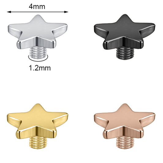 4pcs Star Dermal Anchor Tops Surgical Steel Internally Threaded Skin Diver Piercings