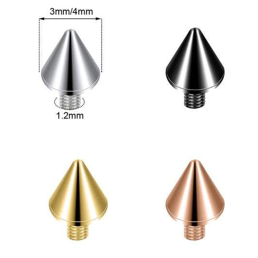 4pcs Spike Dermal Anchor Tops Surgical Steel Internally Threaded Skin Diver Piercings