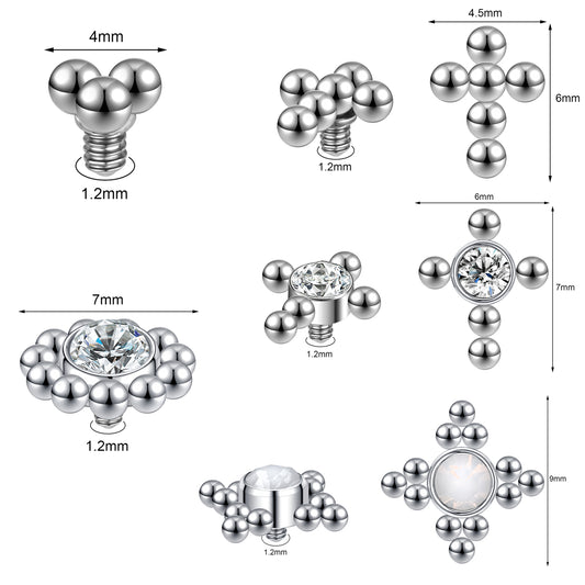 5pcs Steel Ball Dermal Anchor Tops Surgical Steel Internally Threaded Skin Diver Piercings