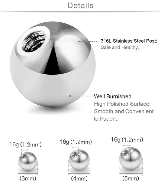 80pcs/pack Body Jewelry Piercing Barbell Parts 16G Replacement Balls
