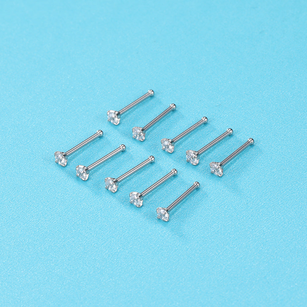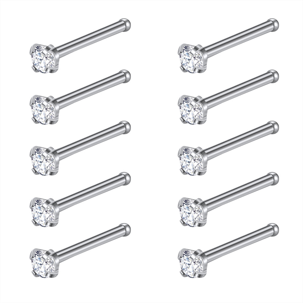 10Pcs/Set 20g Cubic Zirconia Nose Studs Piercing Nose Bone Rings-Economic Set