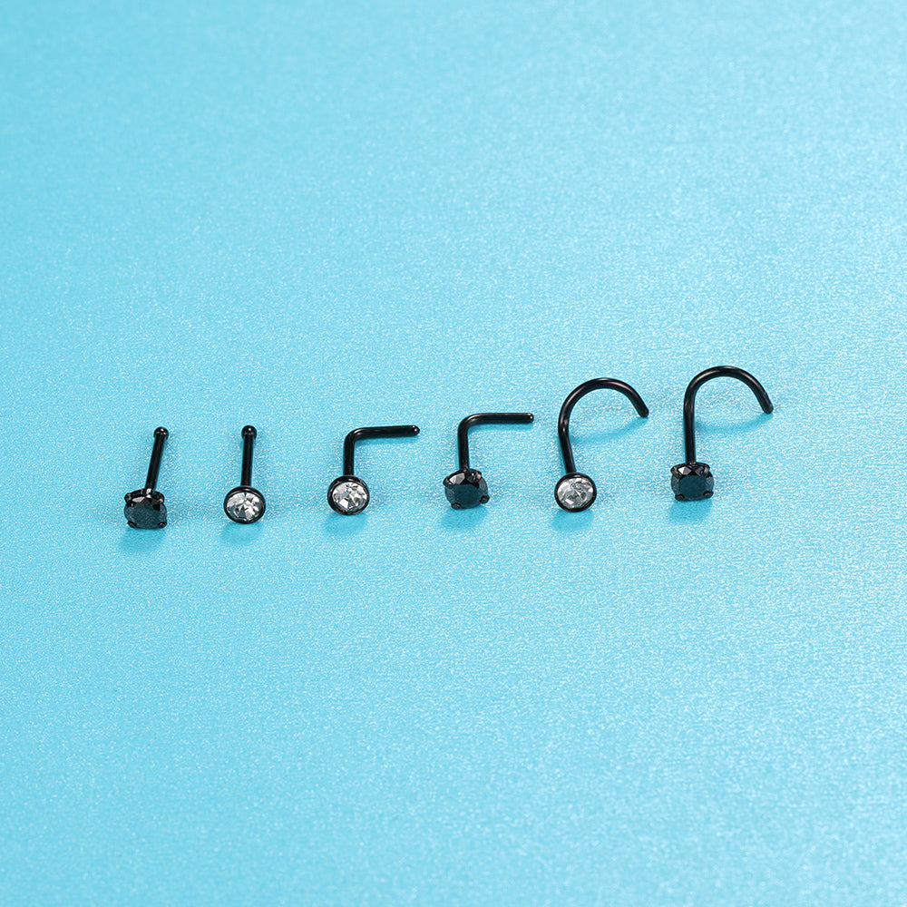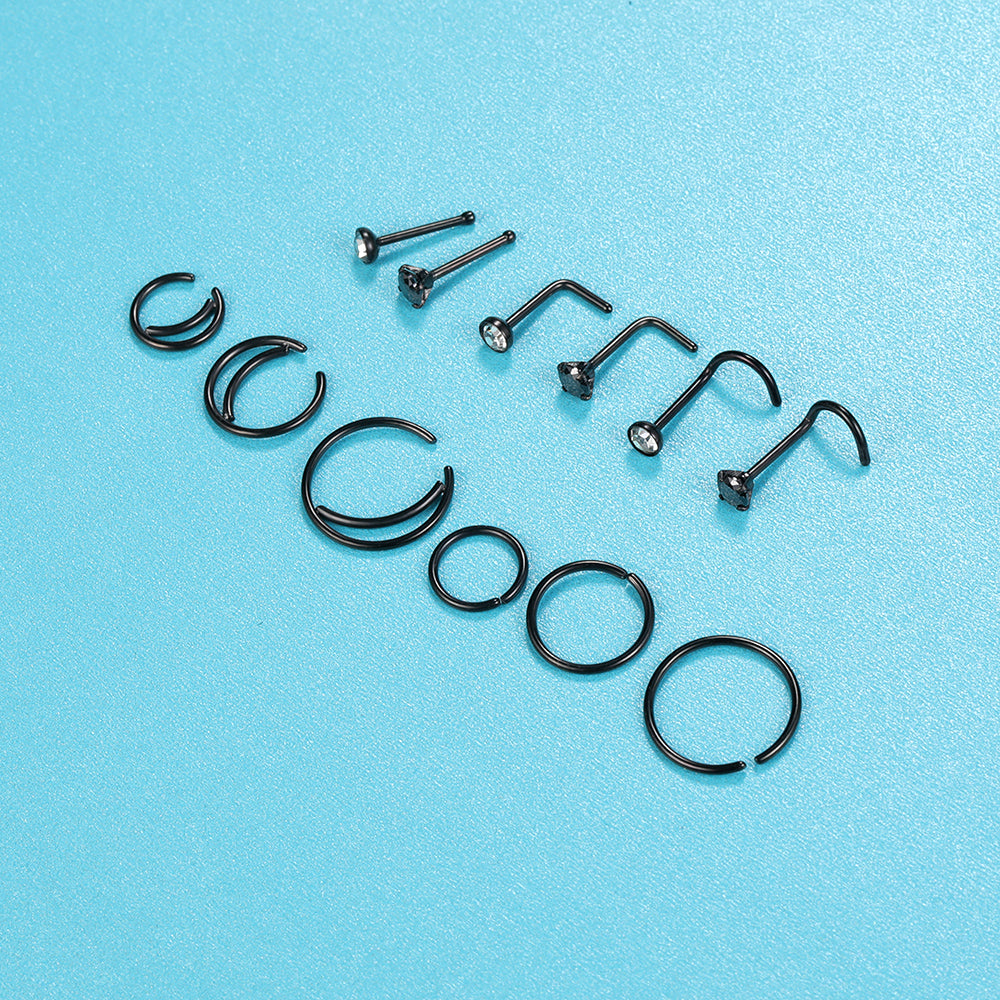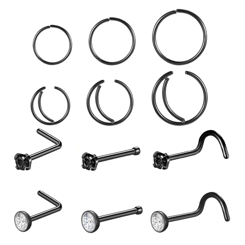 12Pcs/Set 20g Black Nose Stud Ring Piercing Nose Bone/L Shaped/Nose Screws-Economic Set