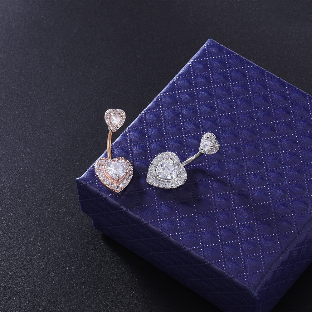 - Navel Ring Design : Heart Shape Rose Gold Crystal Belly Button Rings.