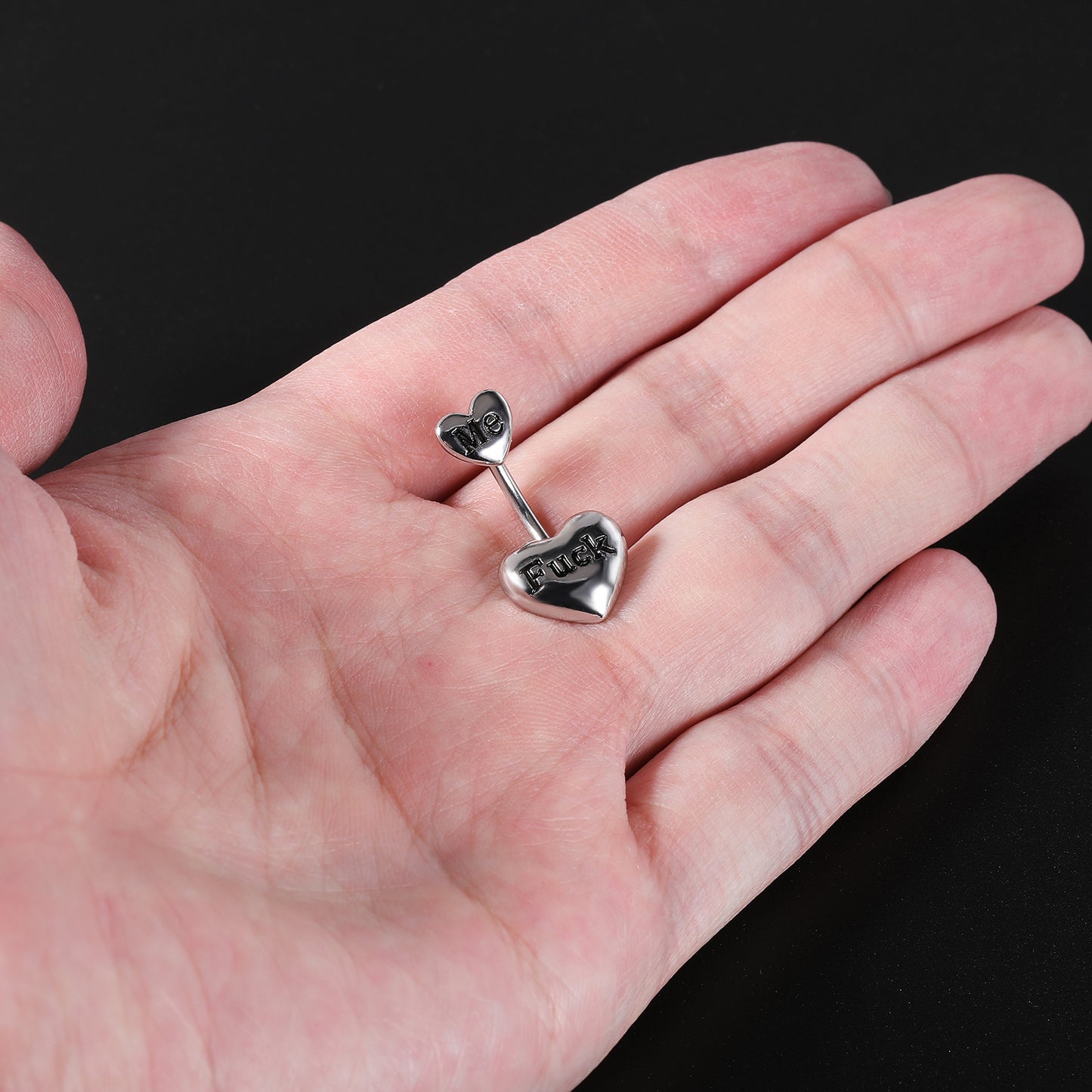 14g Double Heart Belly Button Piercing Lettering Belly Navel Ring Jewelry