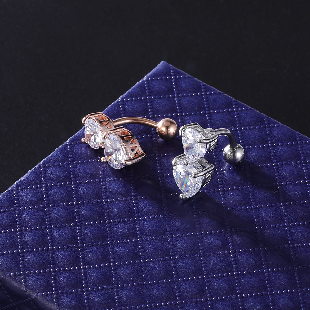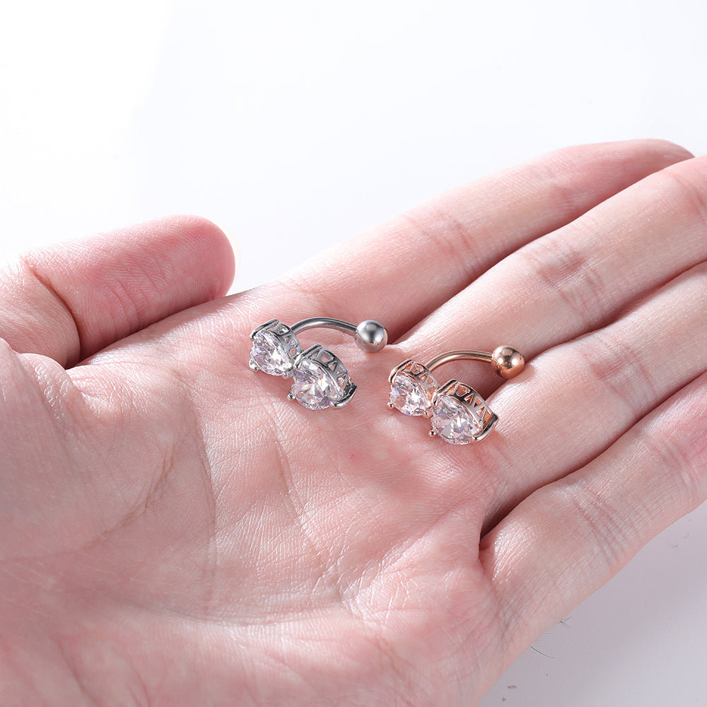- Navel Ring Design : Double Heart Shaped Rose Gold Belly Button Rings.