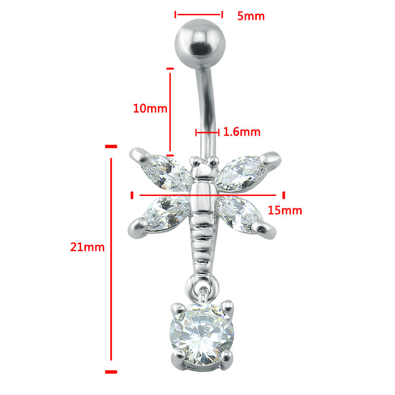 14g Dragonfly Stainless Steel Belly Button Rings Cubic Zirconia Dangle Navel Piercing Jewelry