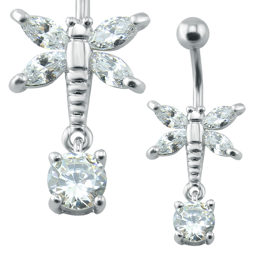 - Navel Ring Design: Dragonfly Dangle Cubic Zirconia Belly Button Rings.