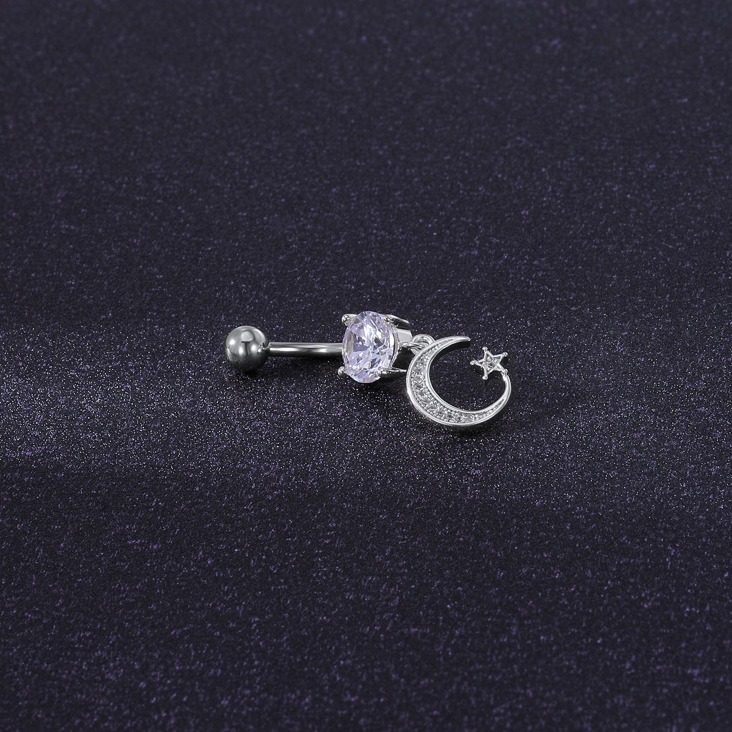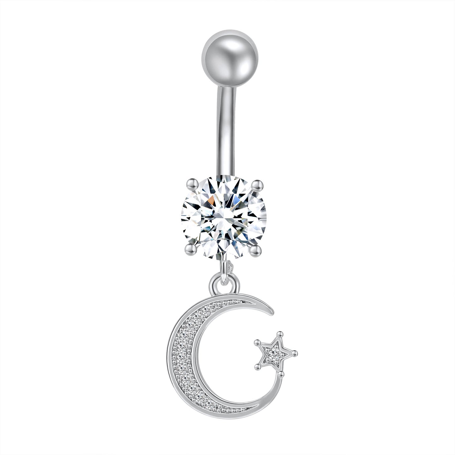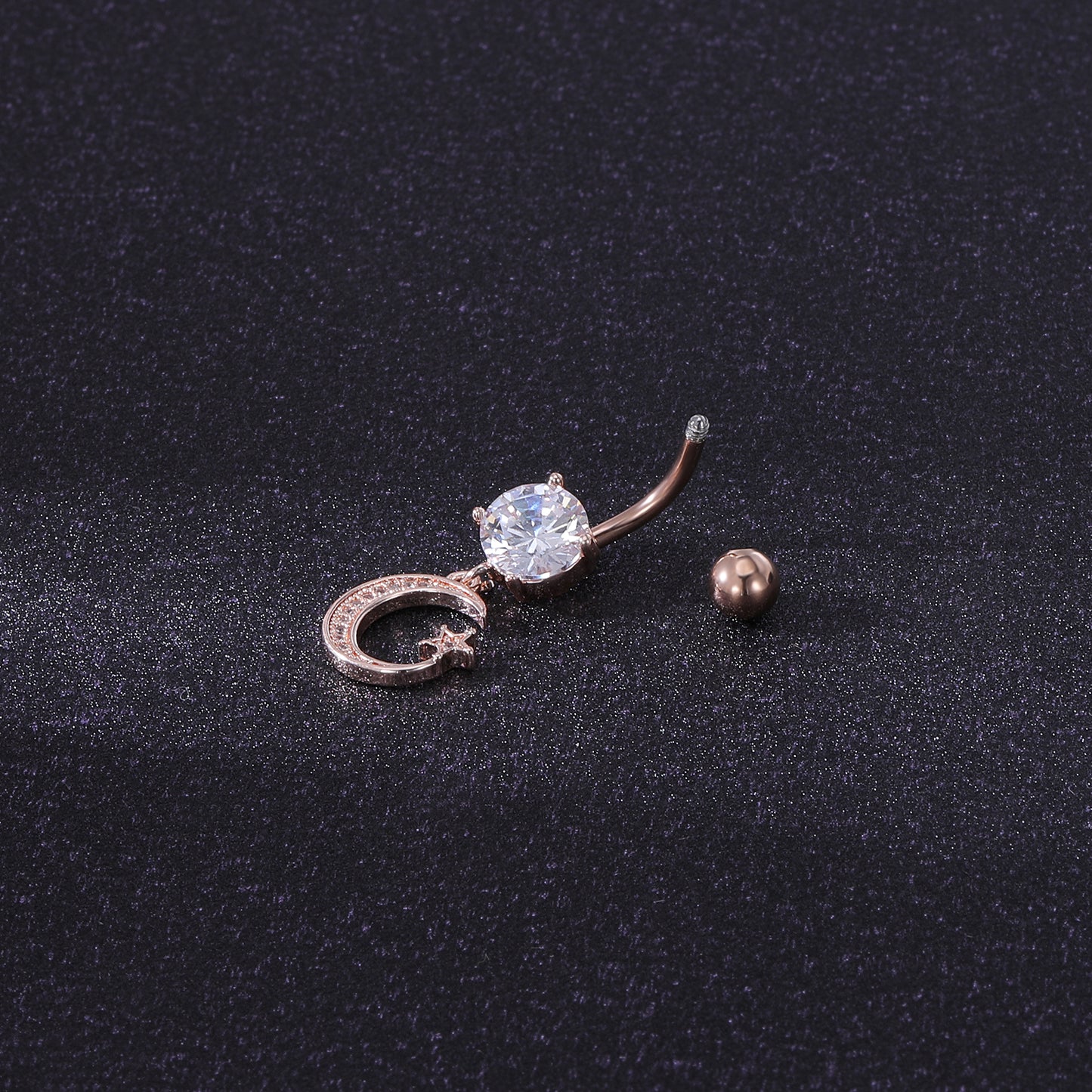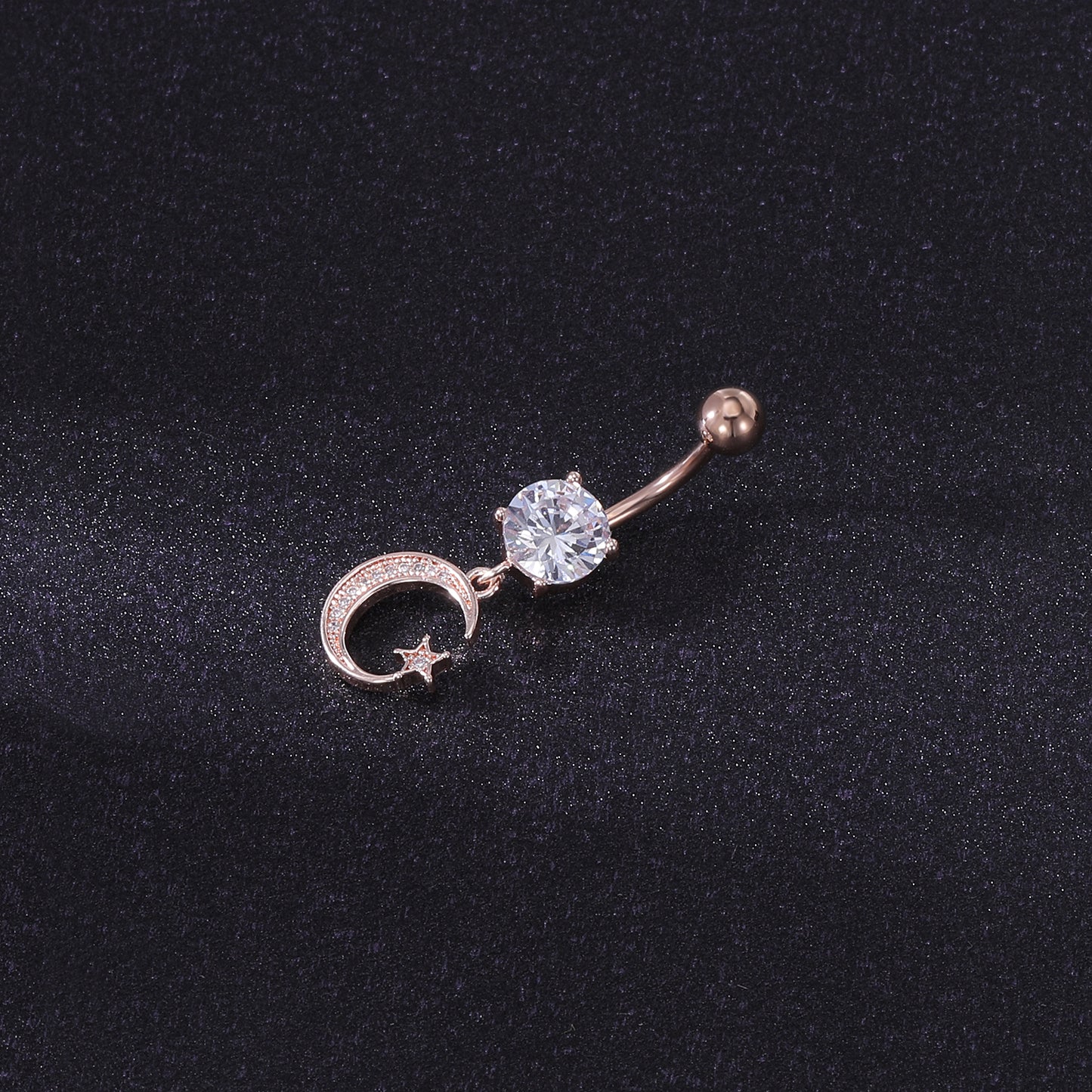 - Navel Ring Design: rose gold drop dangle moon stars zirconia, classial style.