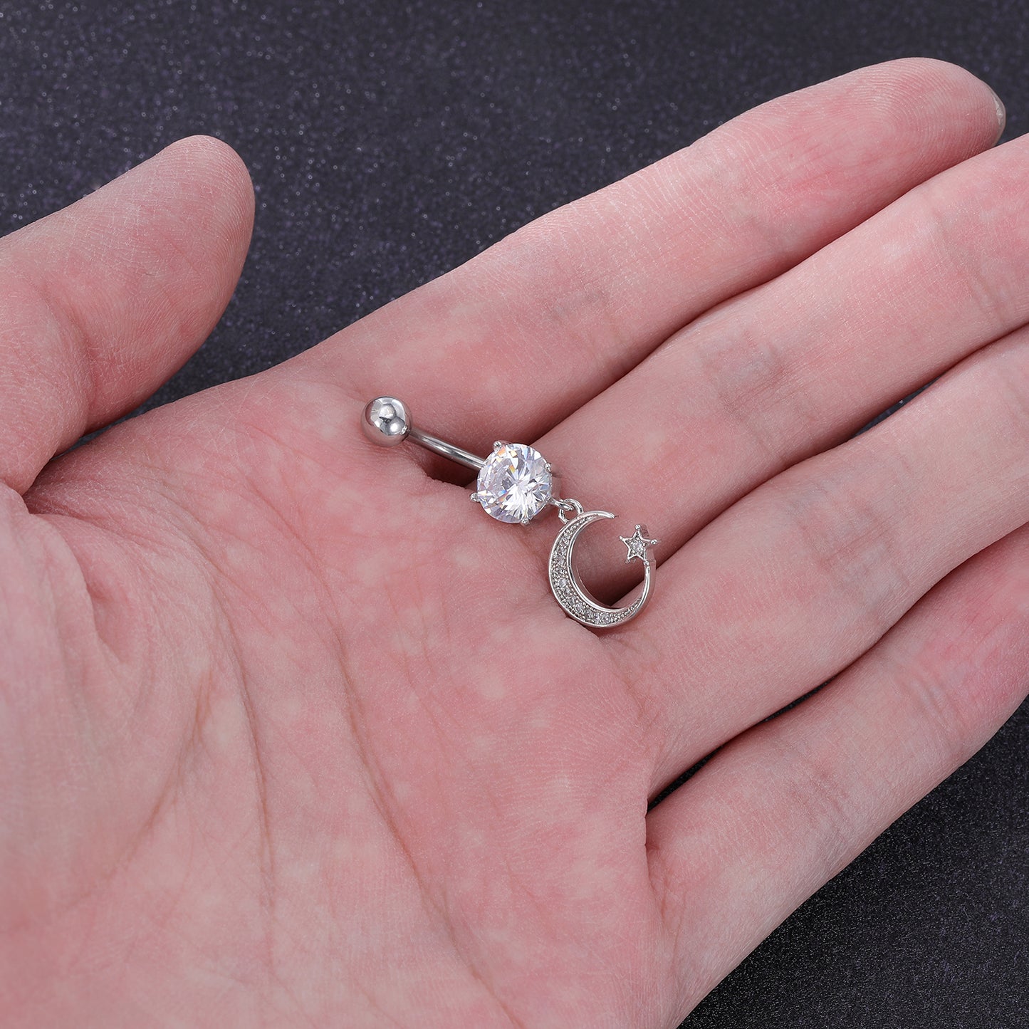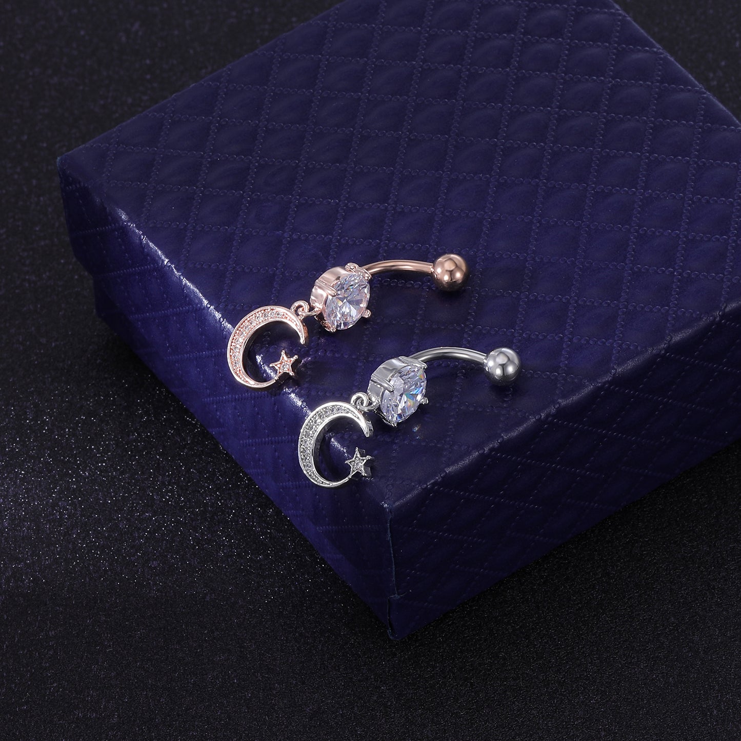 14g Drop Dangle Moon Stars Belly Button Rings Rose Gold Crystal Navel Piercing Jewelry