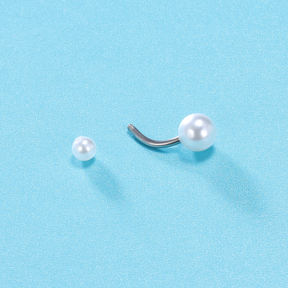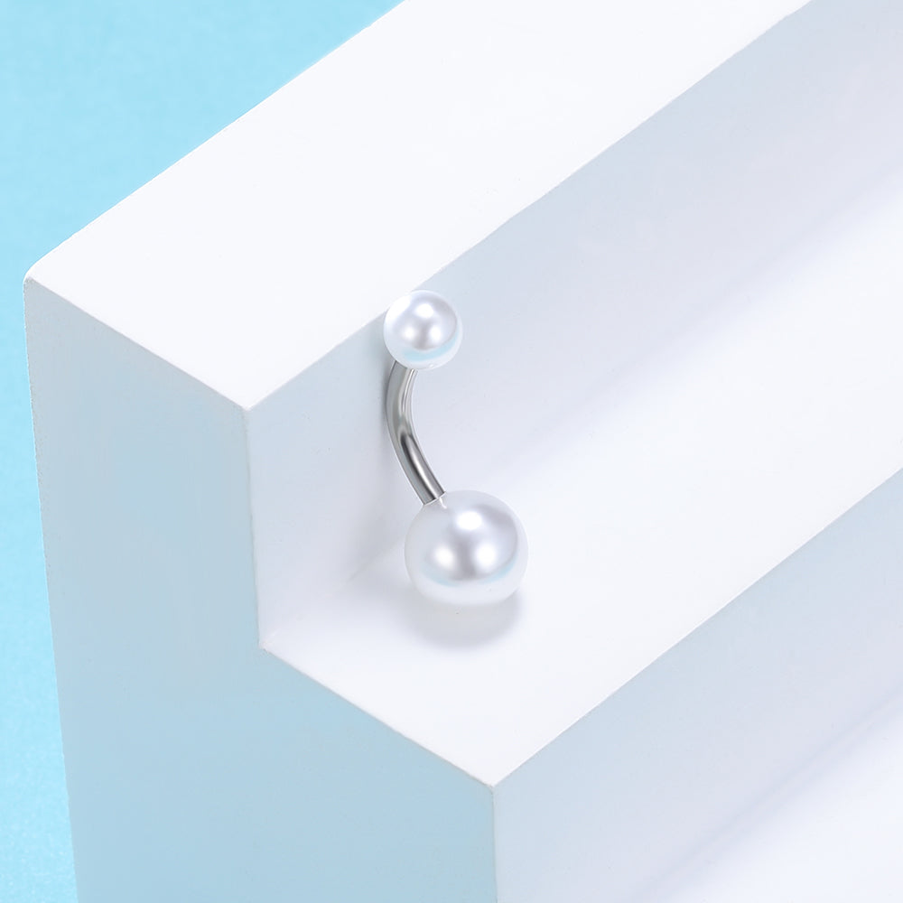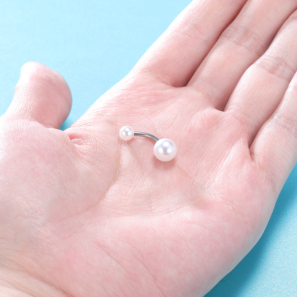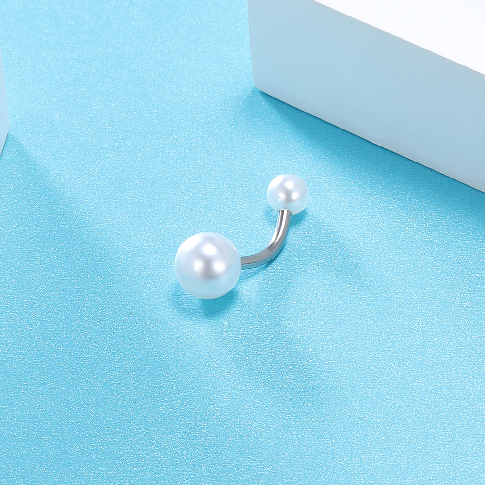 - Navel Ring Design: Imitation pearls Double Ball Belly Button Rings