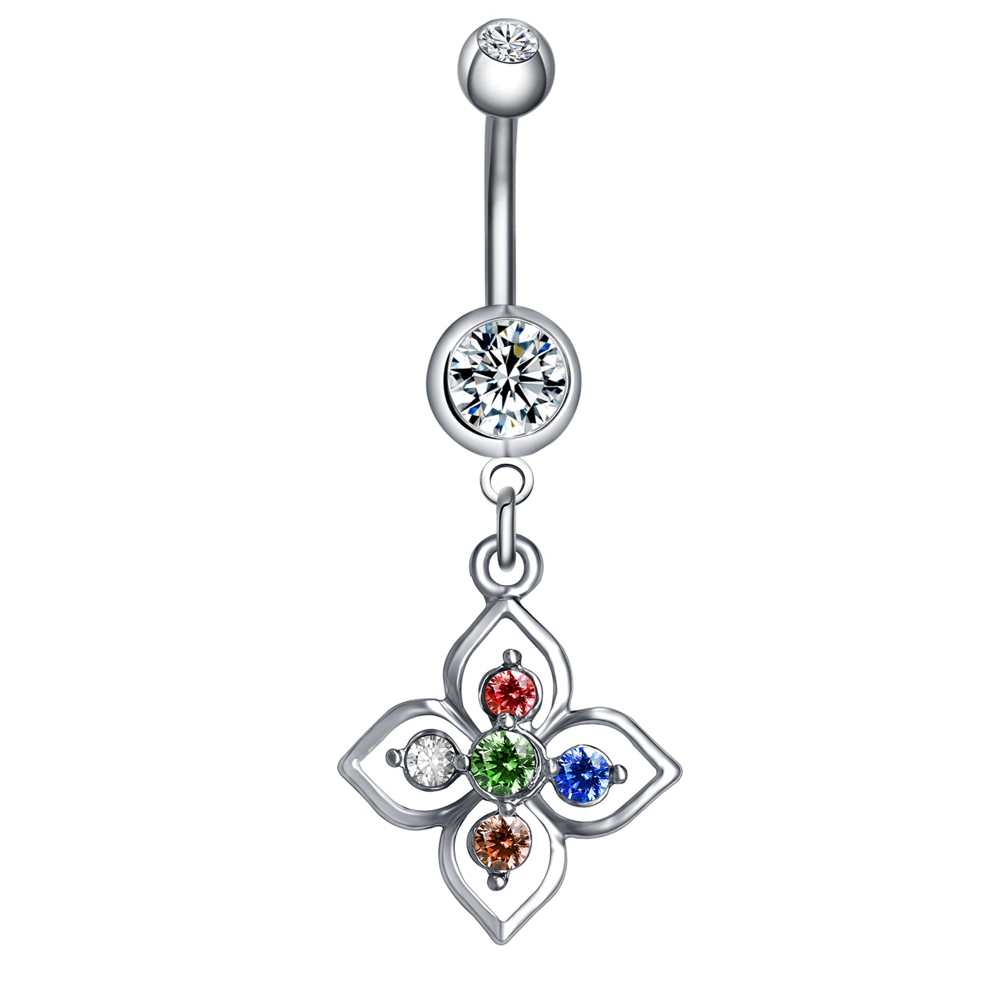 - Navel Ring Design: Lucky Flower Colorful Zirconia Dangle Belly Button Piercing.