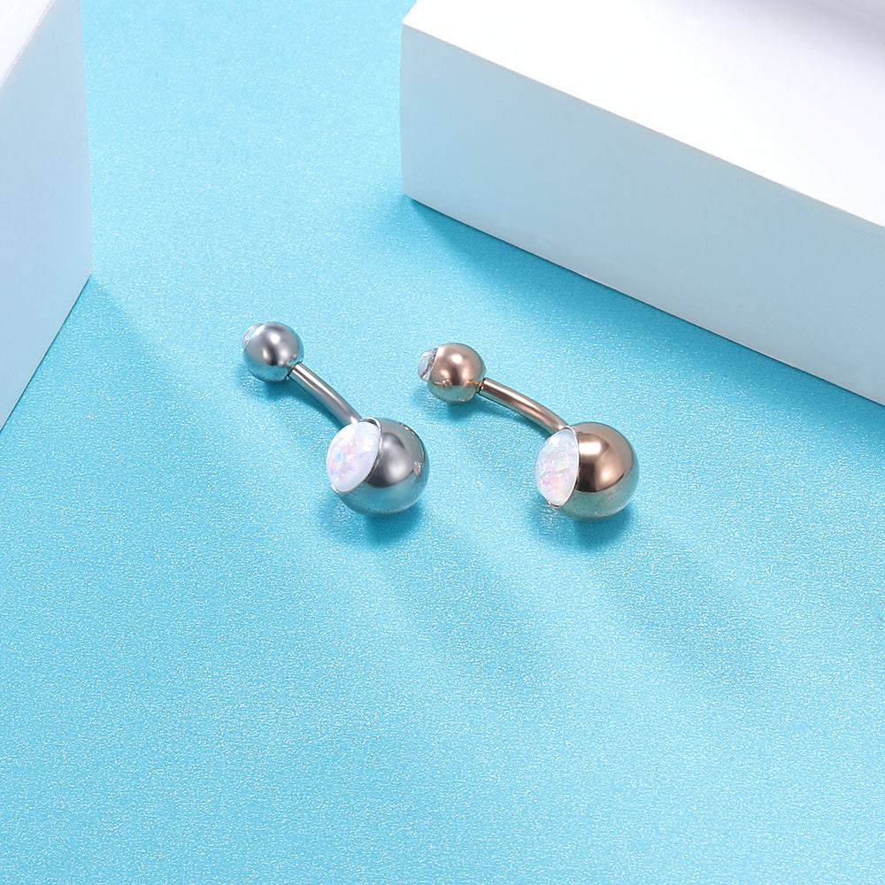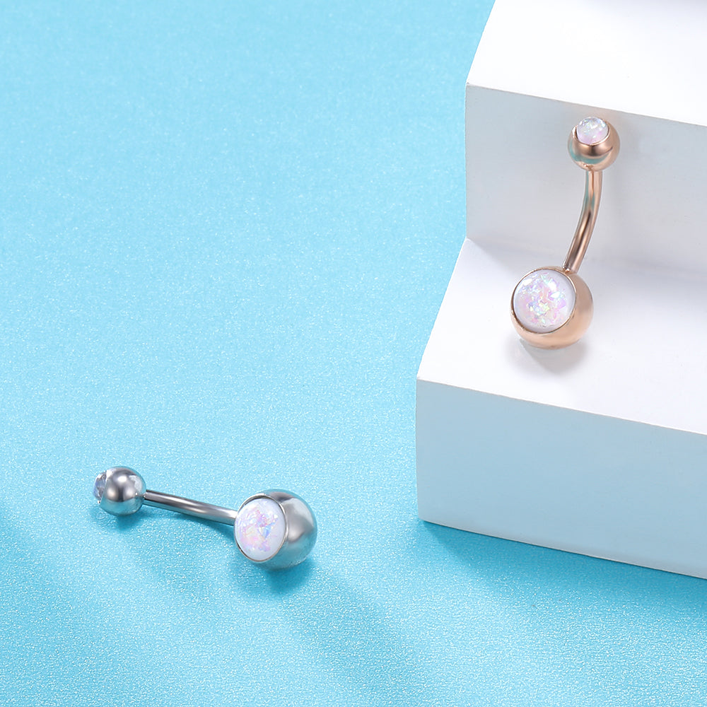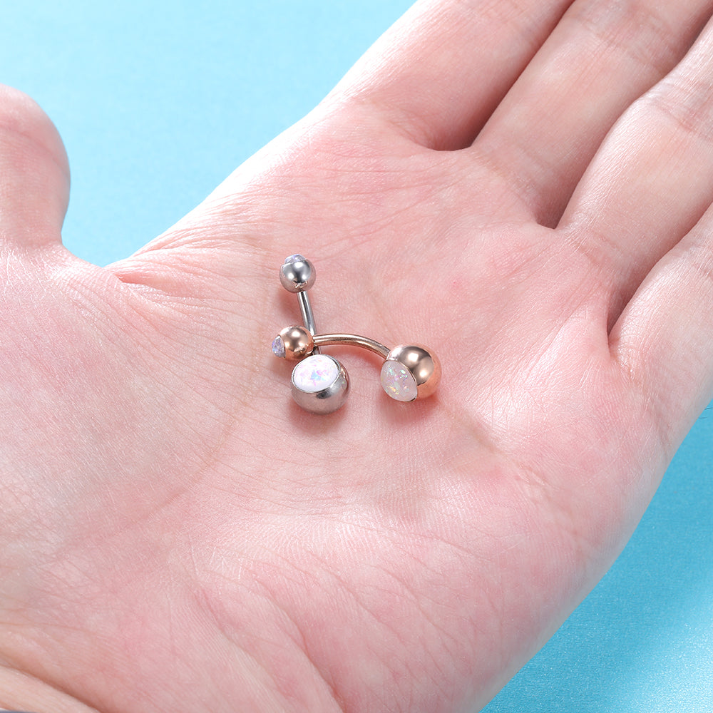 14g Opal Belly Button Rings Rose Gold Double Ball Belly Navel Piercing Jewelry