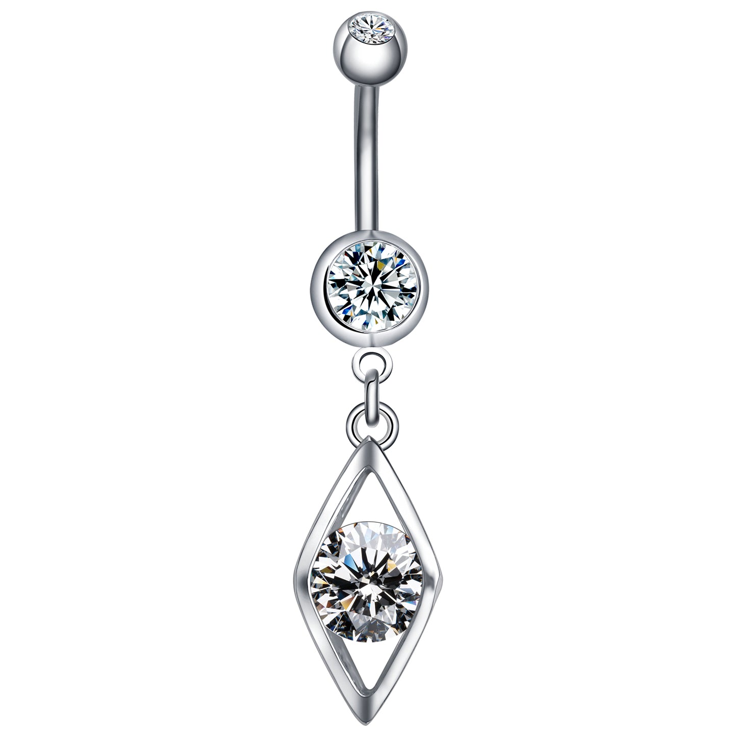 14g Prismatic Stainless Steel Belly Button Rings White Zircon Dangle Navel Piercing Jewelry