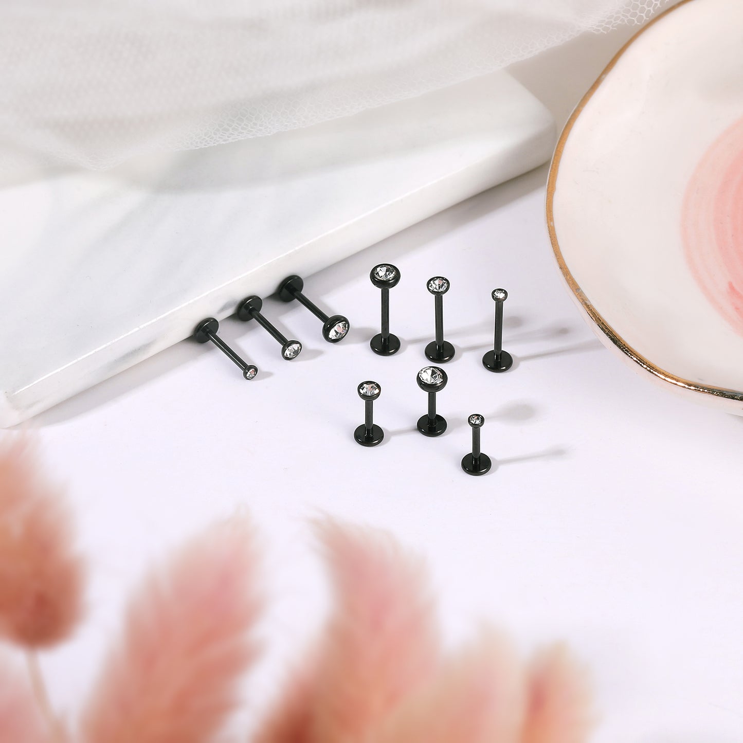 - Material: Labret Lip Studs made of 316L Stainless Steel and Crystal.