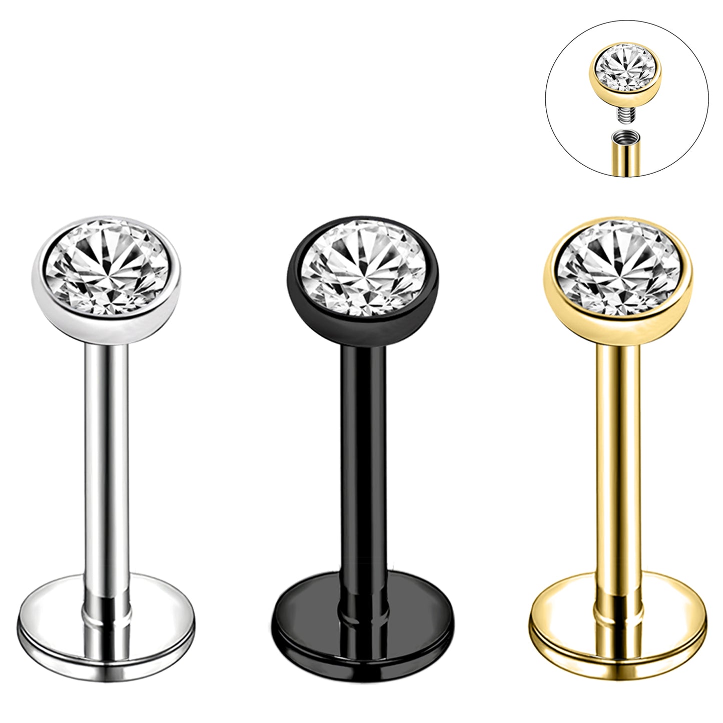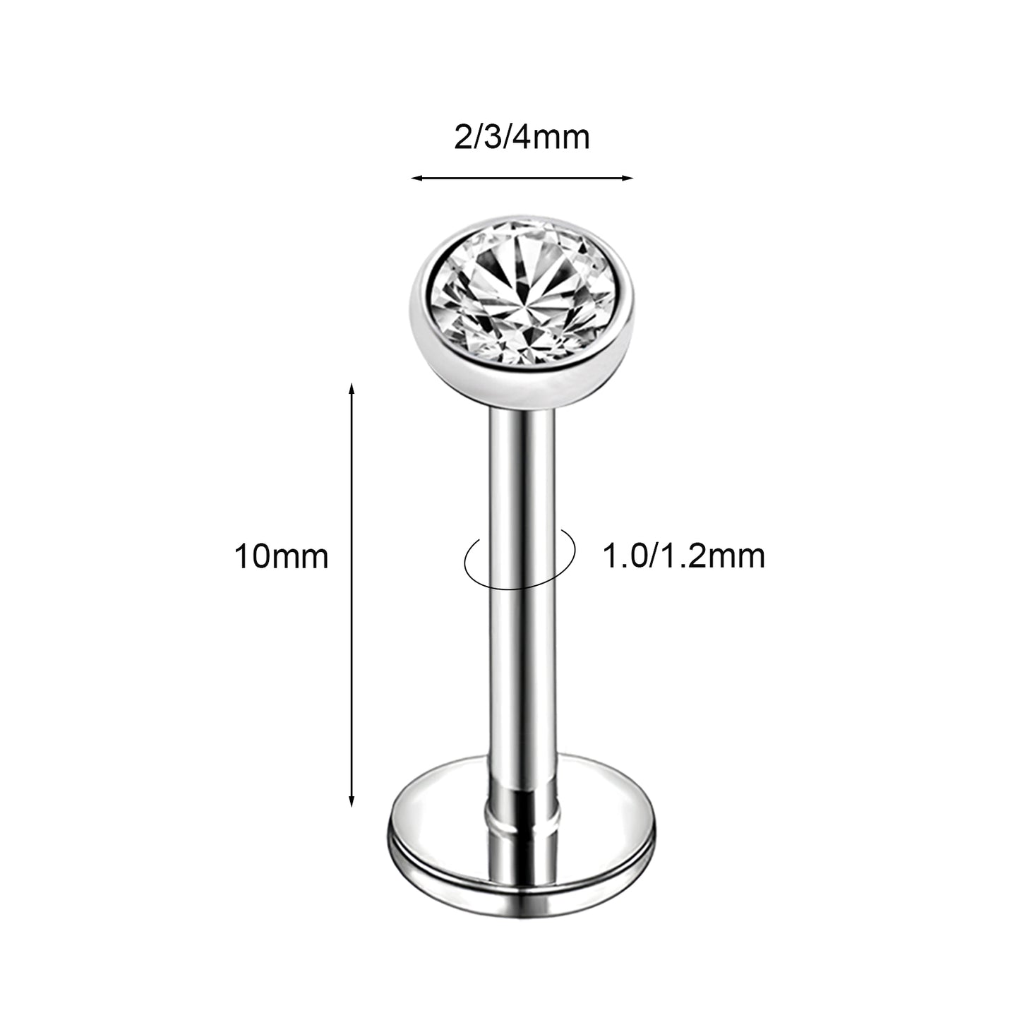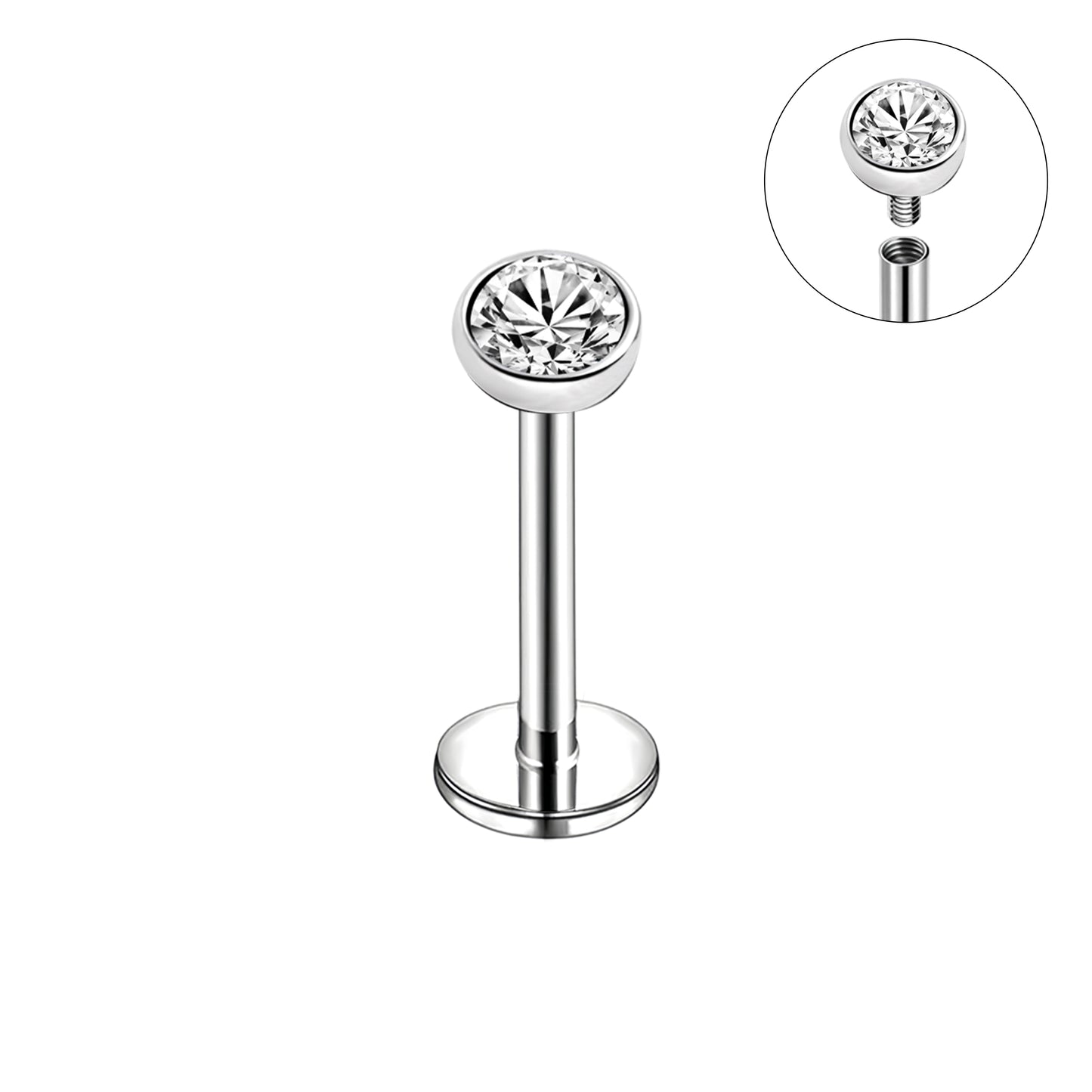 16g/18g Clear Crystal Labret Ring Internal Thread Labret Studs Monroe Medusa Piercing