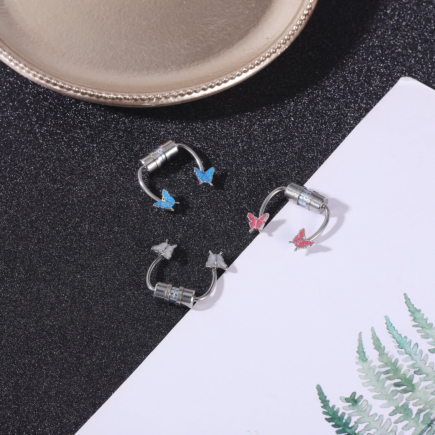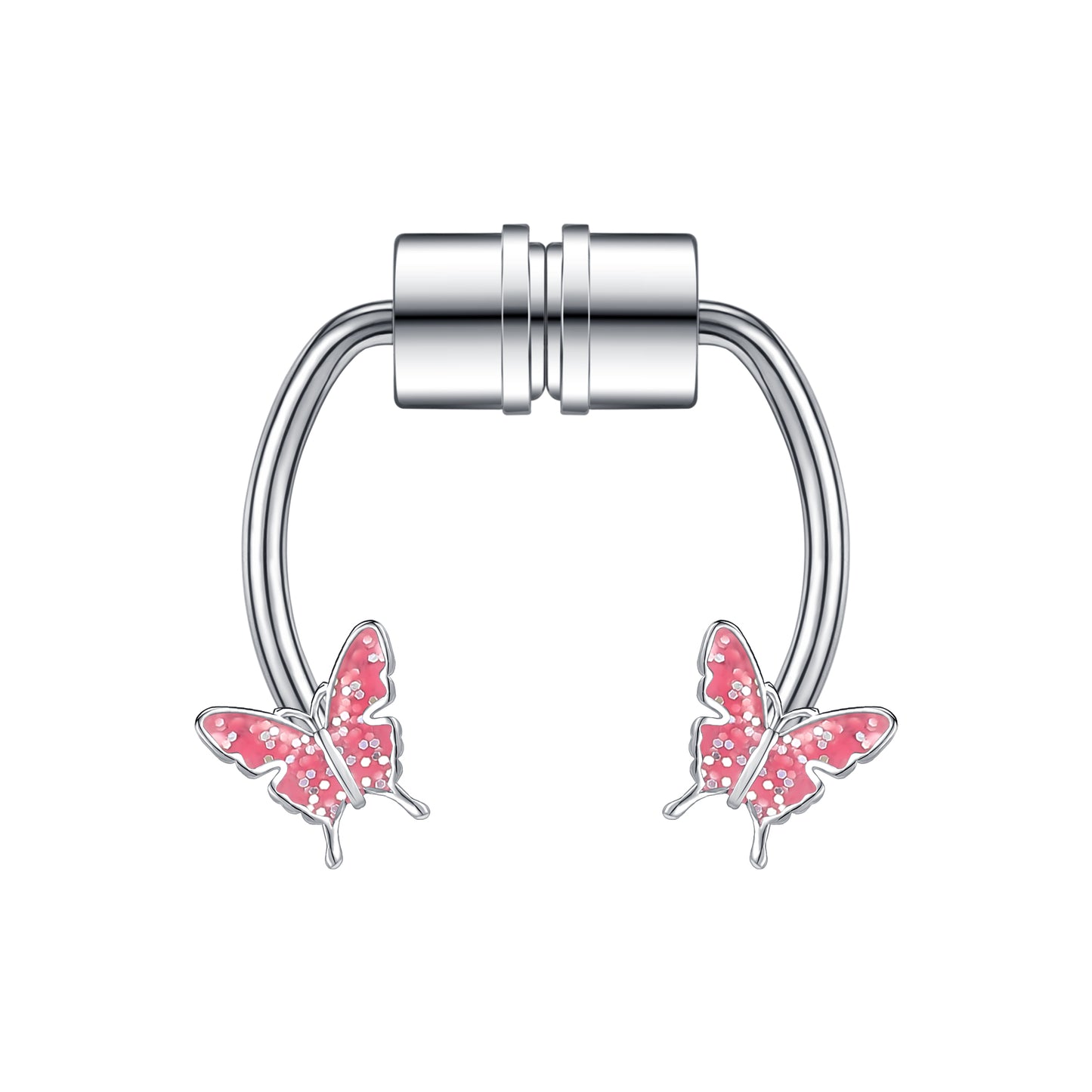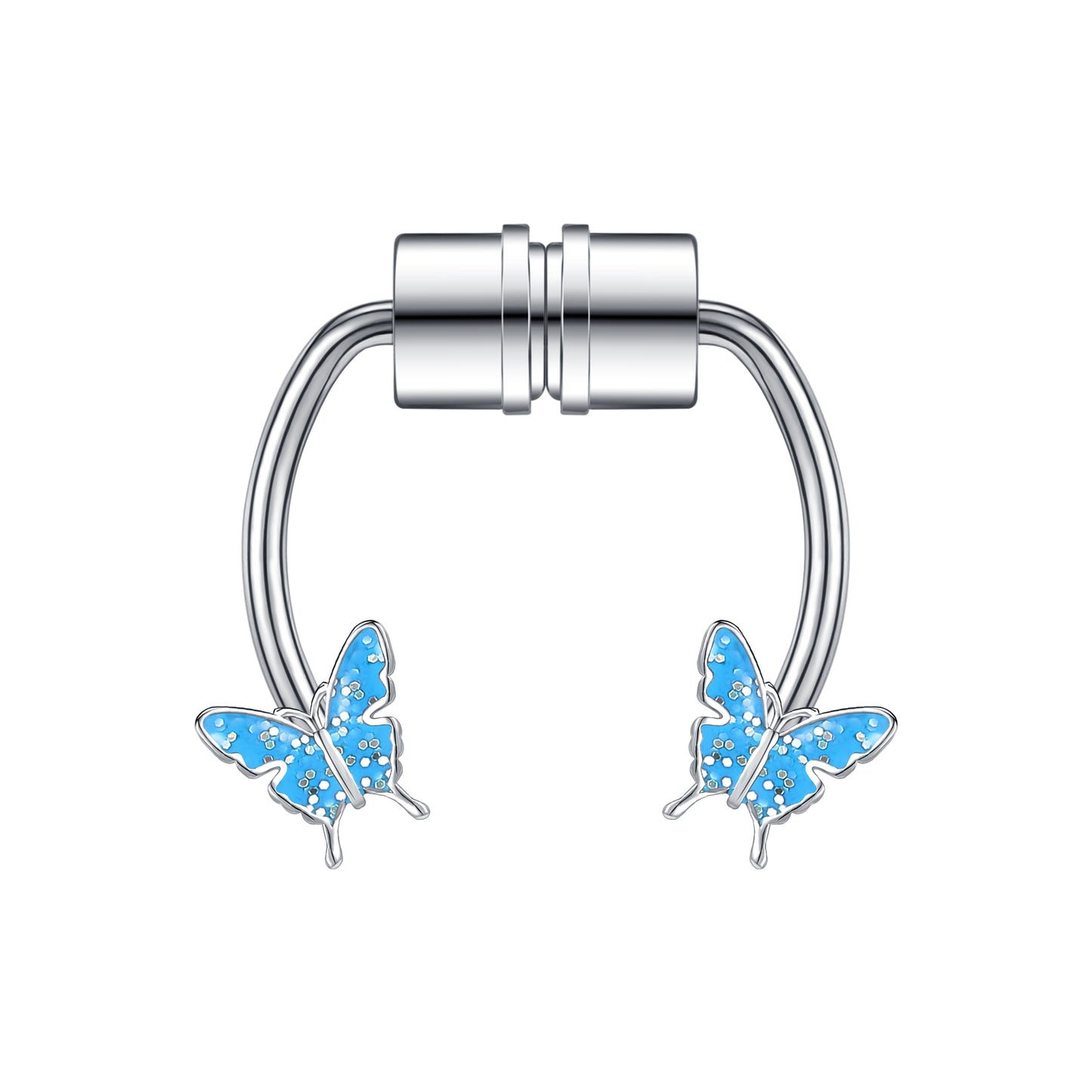 16G 3 Colors Fake Nose Ring Butterfly Magnet Septum Ring