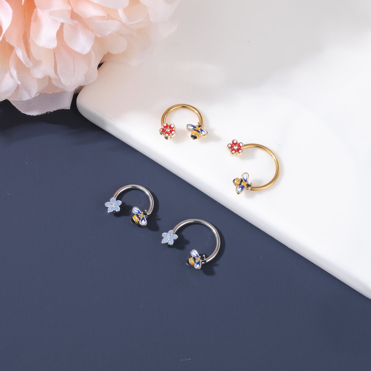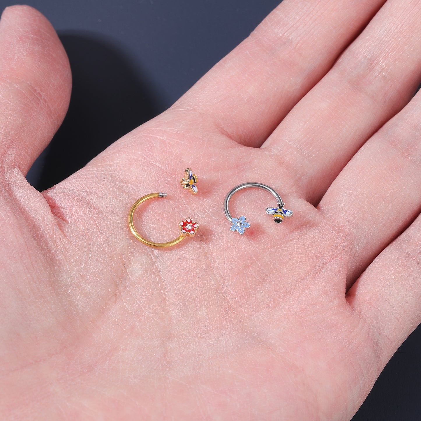 16G Bee & Flower Nose Septum Ring Cartilage Helix Piercing