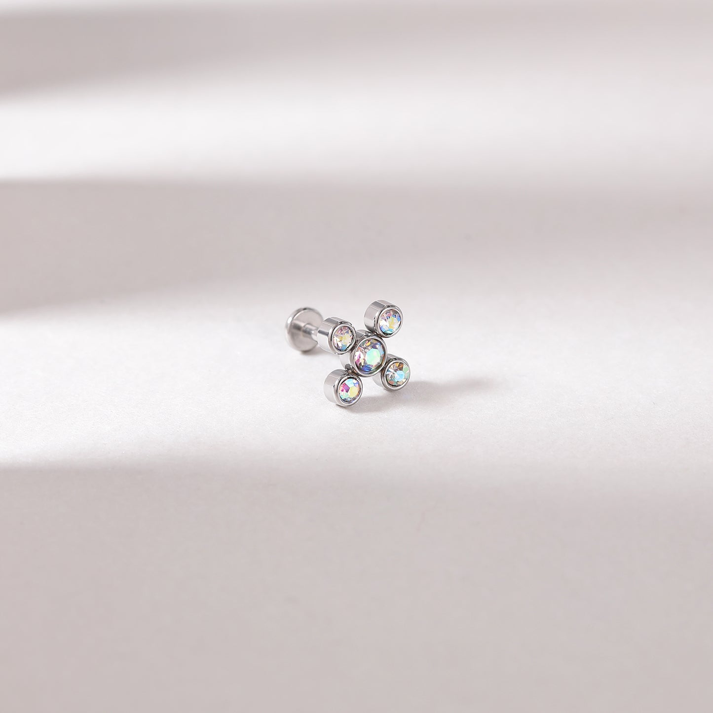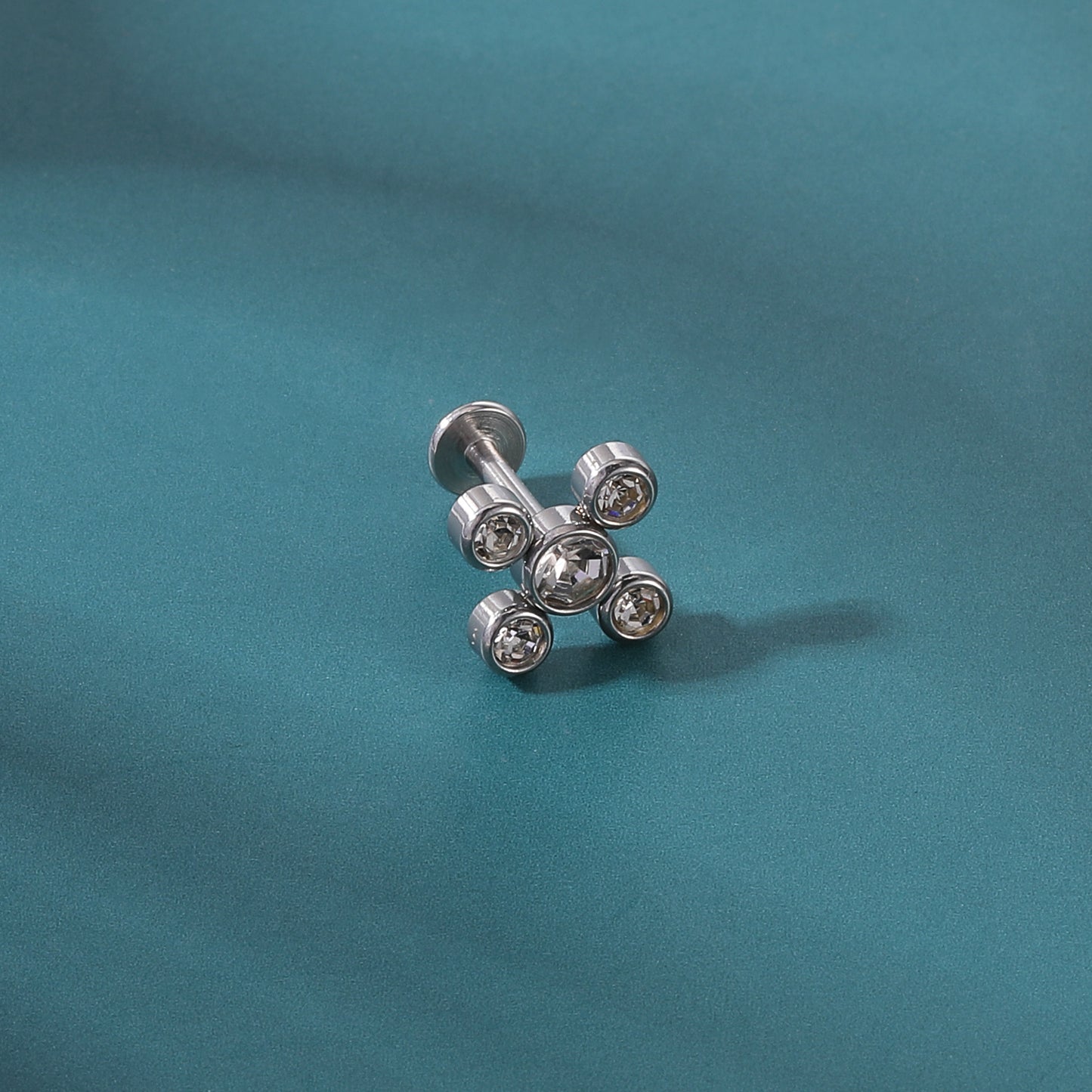16G Cross Crystal Labret Rings Round Tragus Helix Conch Piercing