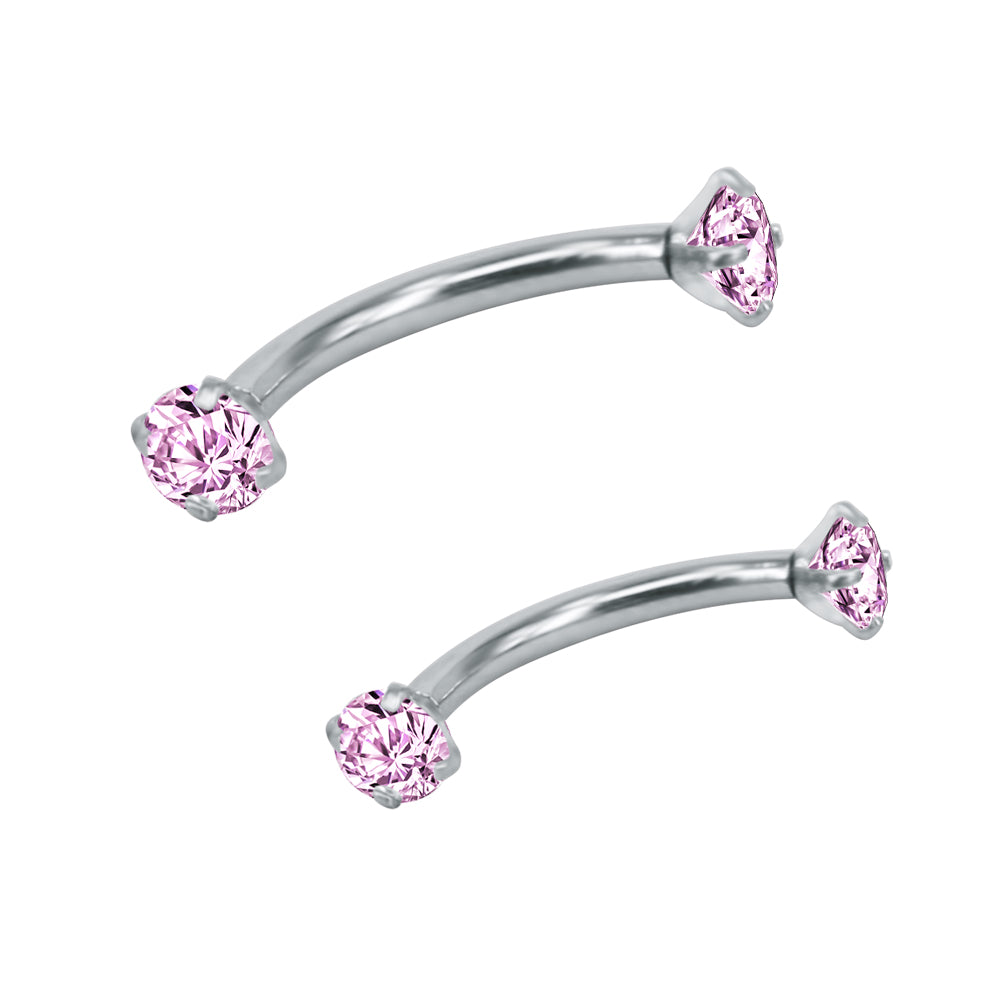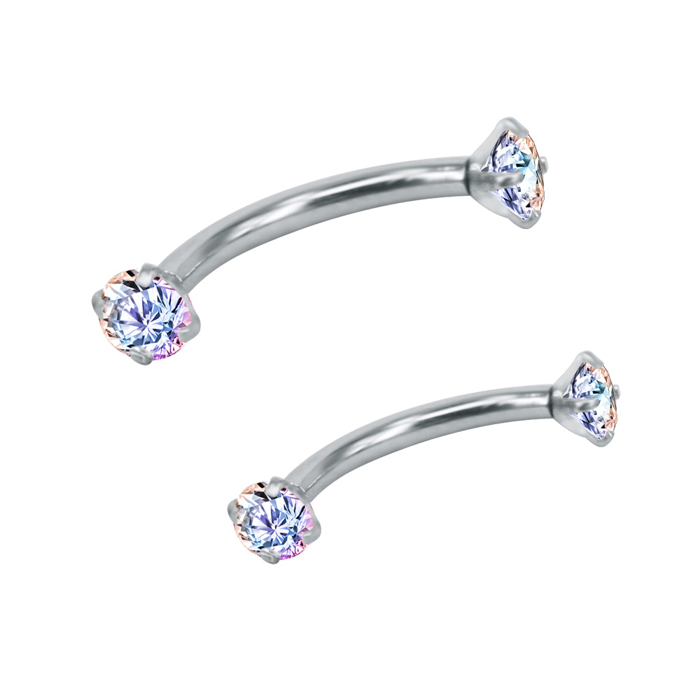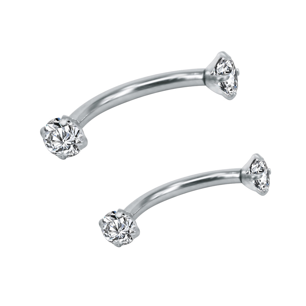 2 Pcs 16g Eyebrow Ring Piercing Barbell Round Crystal Zirconia Curve Helix Daith Piercing