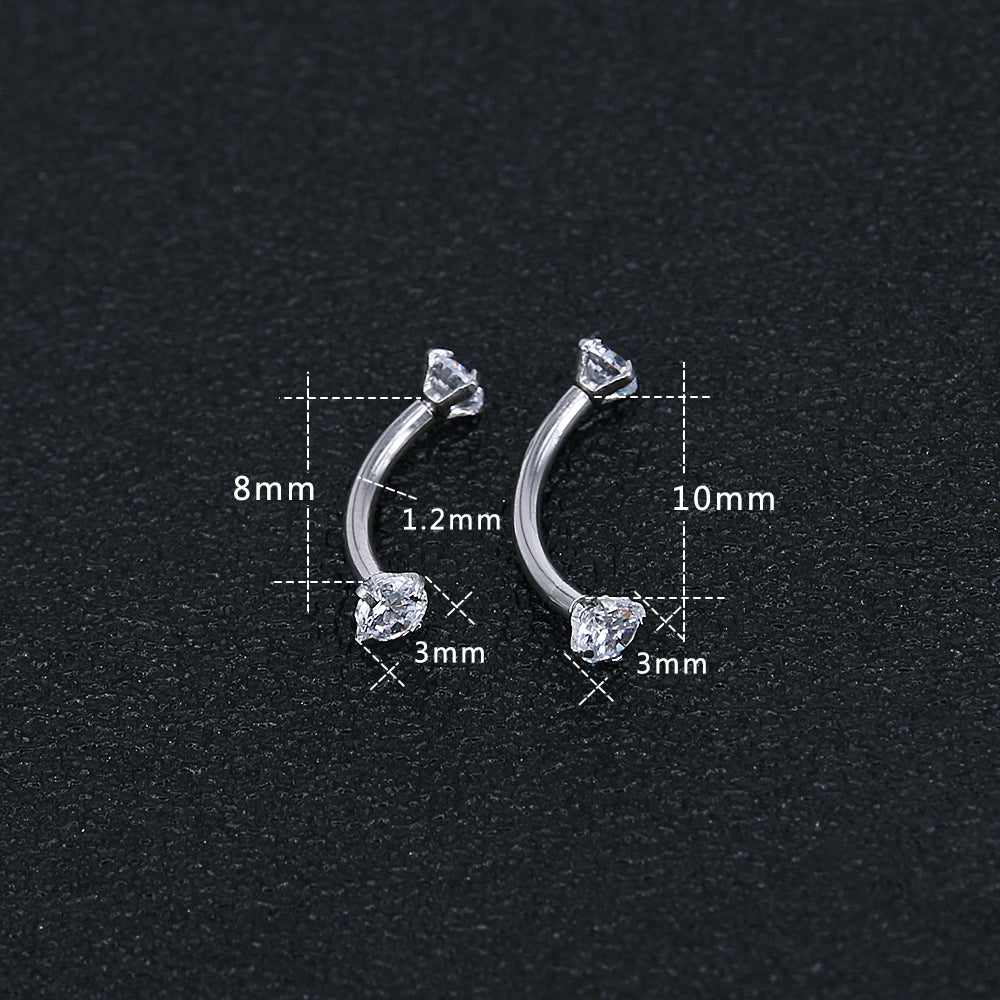 CZ Curve Stud Earrings 316L Stainless Steel Ear Helix Conch Cartilage Piercing