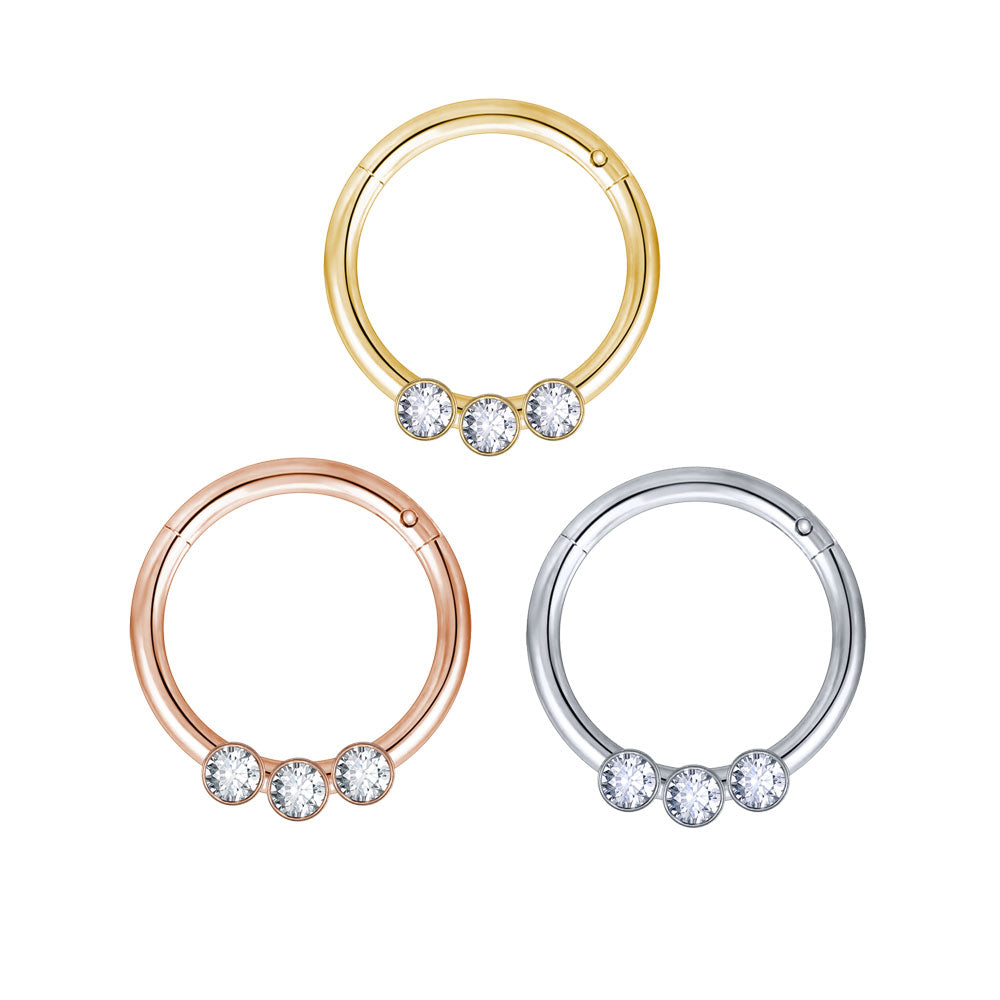 16G Round Crystal Clicker Septum Ring 3 Colors Stainless Stell Charm Helix Cartilage Piercing
