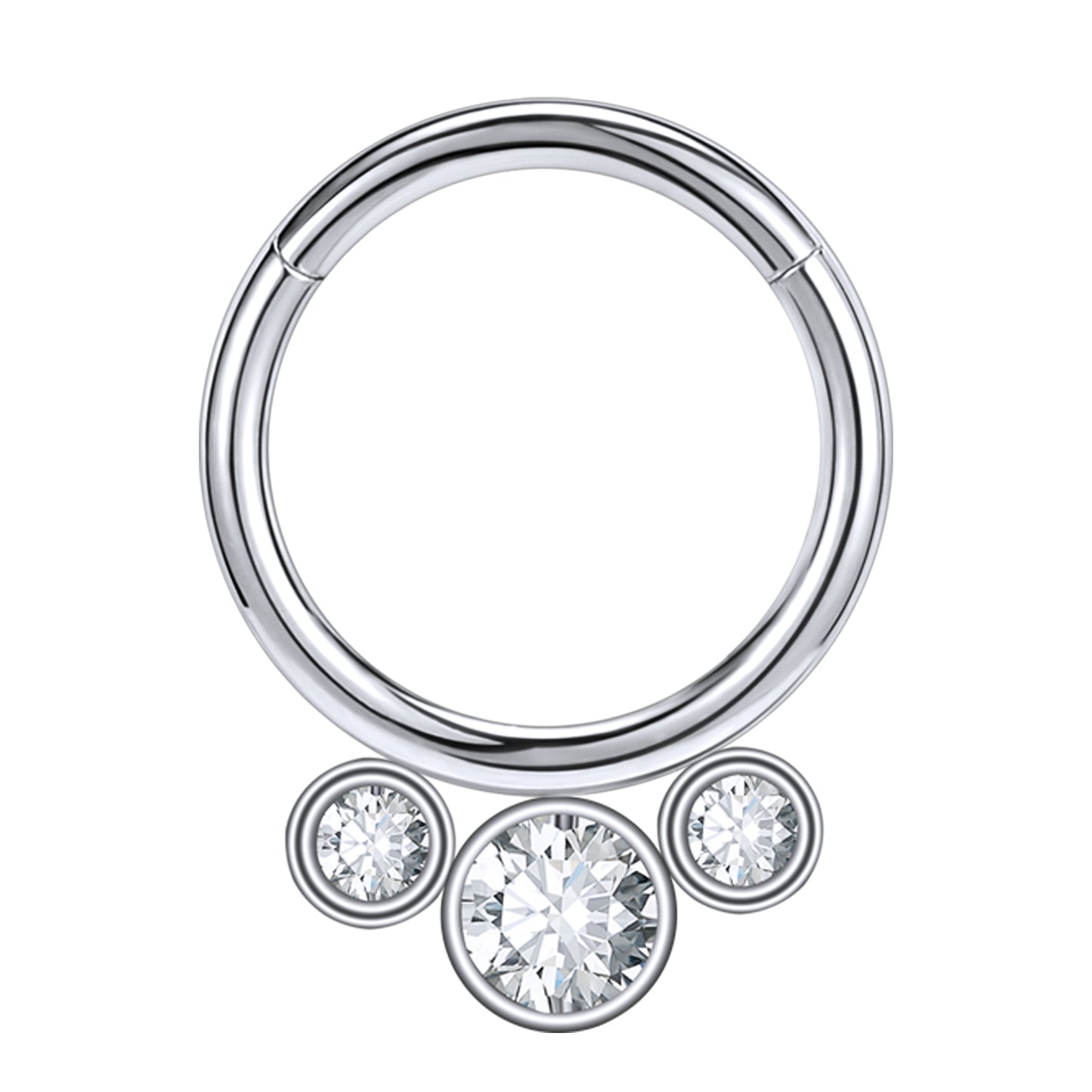 16G Round White Crystal Nose Septum Ring Stainless Steel Clicker Helix Cartilage Piercing