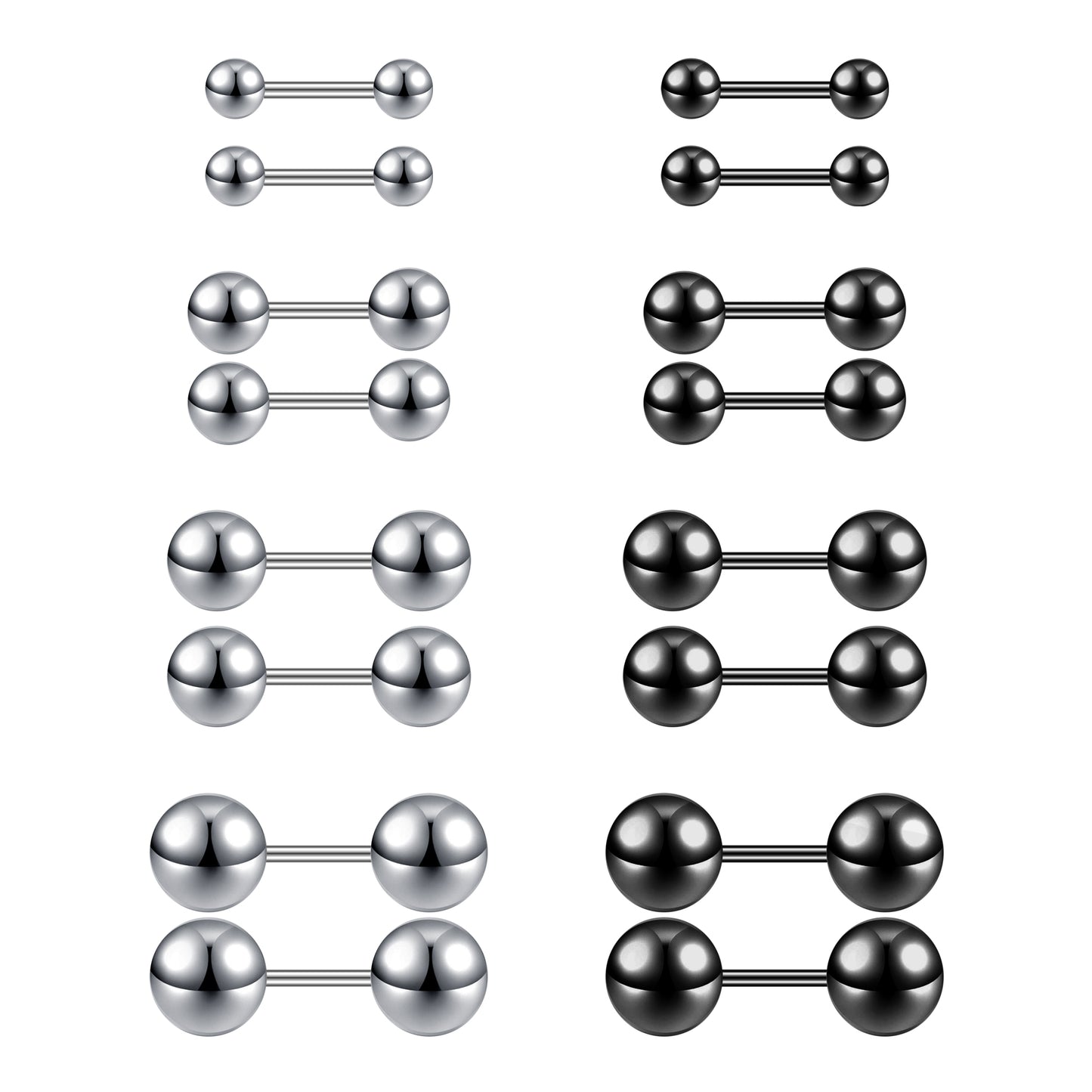 - Gauge: 20g (0.8mm) Bar Thickness, Bar Length: 6mm, Top Size: 3mm, 4mm, 5mm, 6mm.