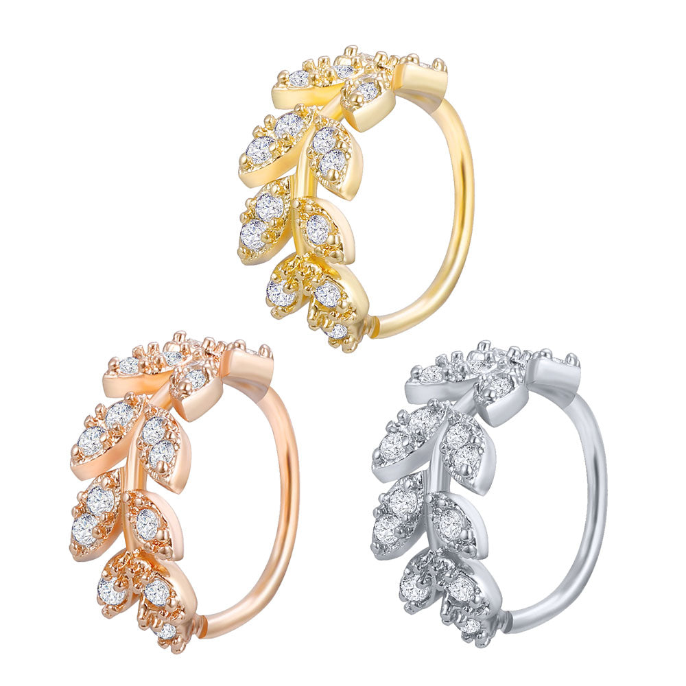 20G Leaf Crystal Nose Septum Rings 3 Colors Charm Copper Helix Cartilage Piercing