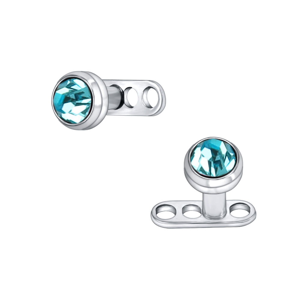 2Pcs 14g Aqua Cubic Zirconia Top Dermal Anchor Microdermals Piercing