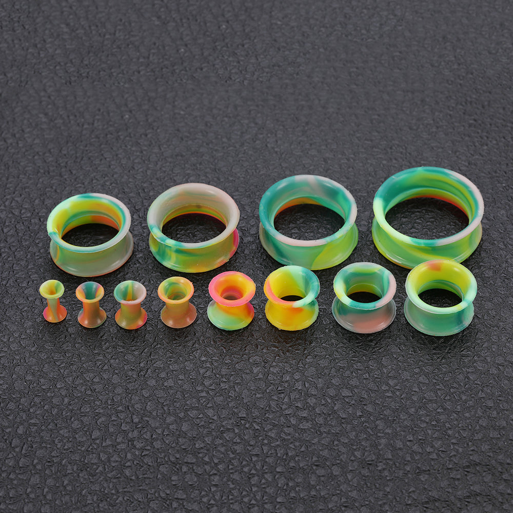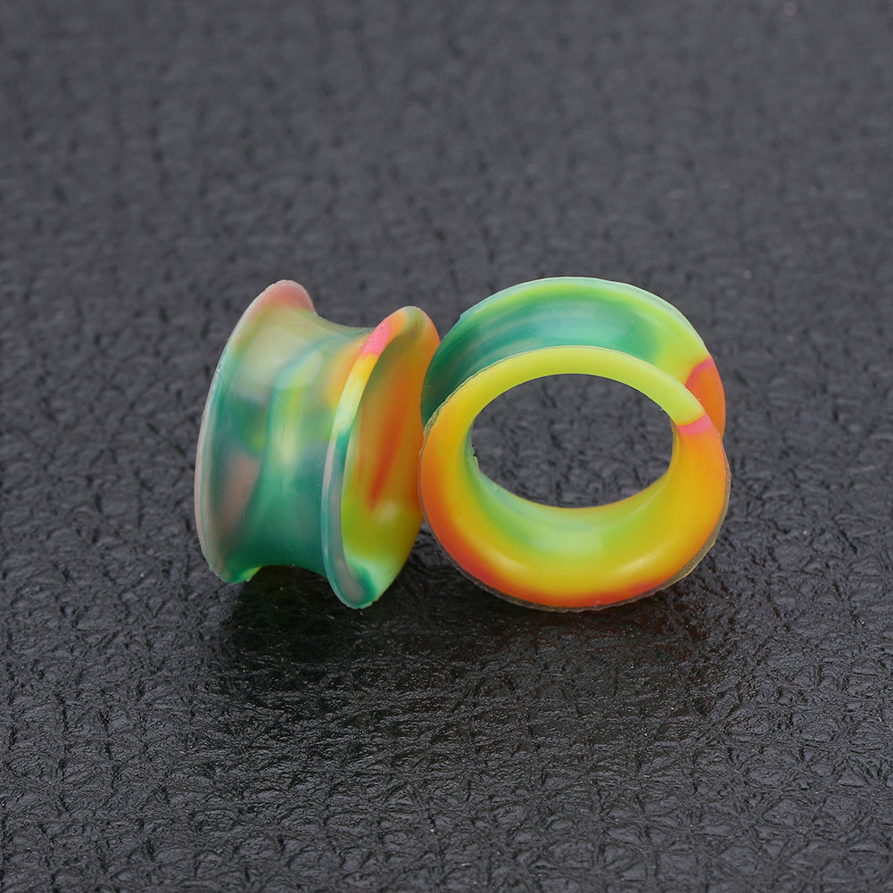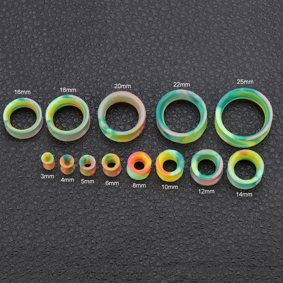 3-25mm Thin Silicone Flexible Green Yellow Red Ear Tunnels Double Flared Expander Ear Gauges