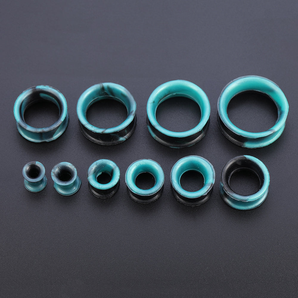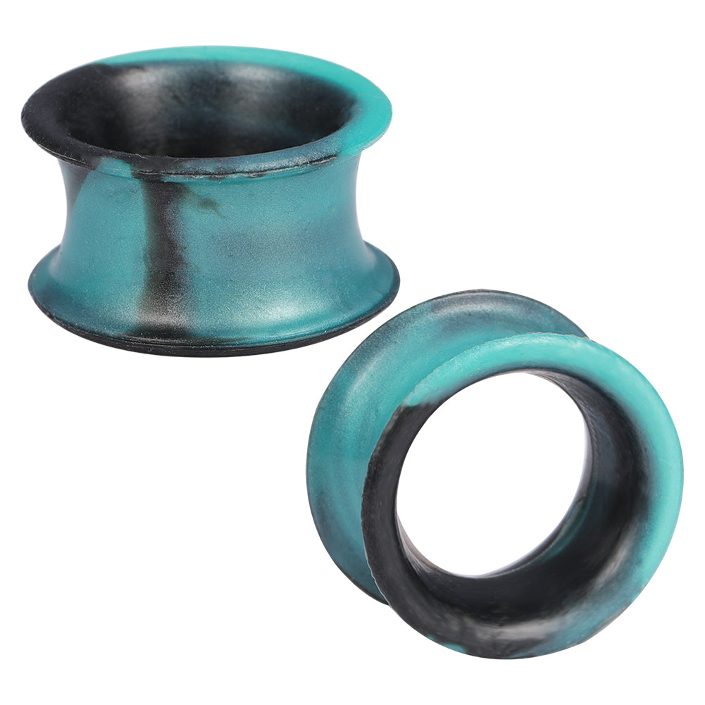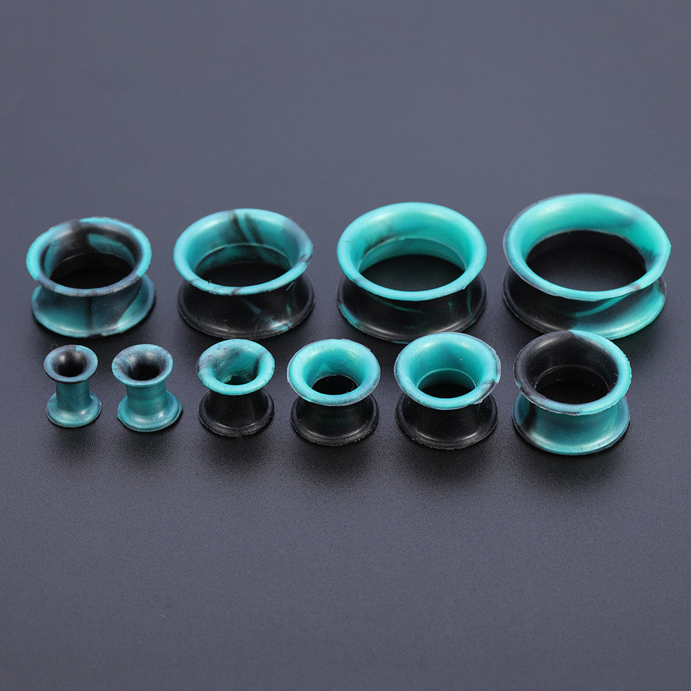 5-22mm Thin Silicone Flexible Dark Green Black Ear Tunnels Double Flared Expander Ear Gauges