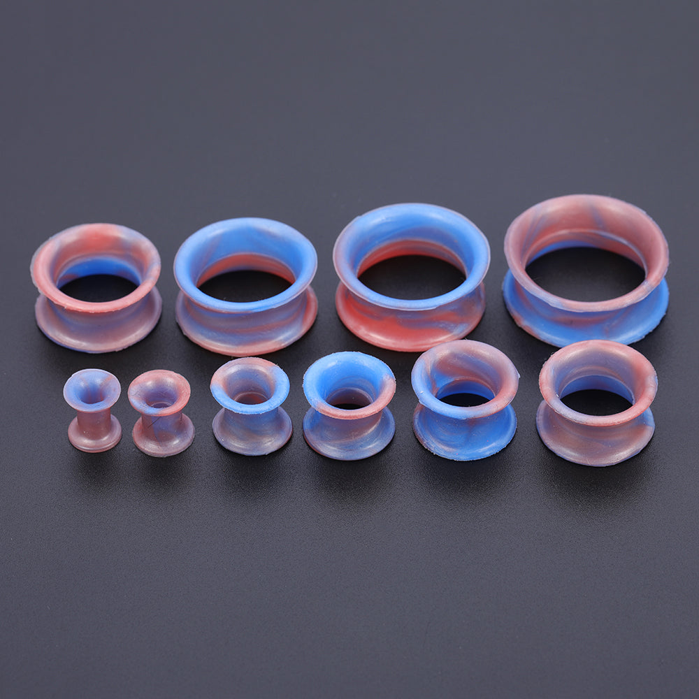 5-22mm Thin Silicone Flexible Light Blue Red Ear Tunnels Double Flared Expander Ear Gauges