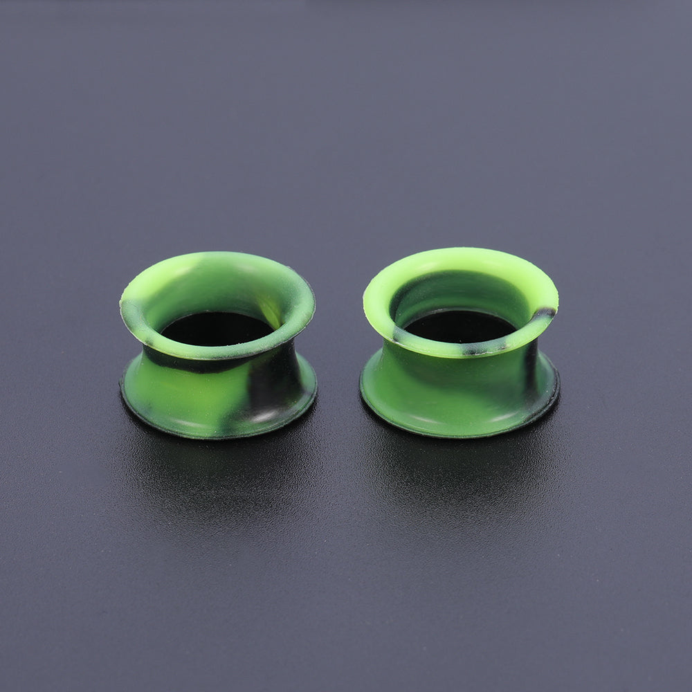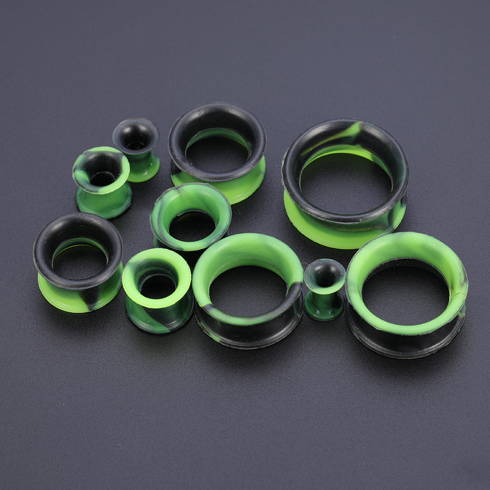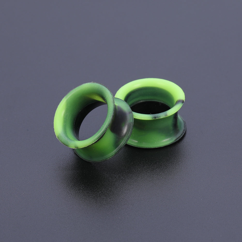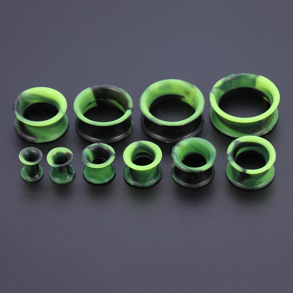 5-22mm Thin Silicone Flexible Green Black Ear Tunnels Double Flared Expander Ear Gauges